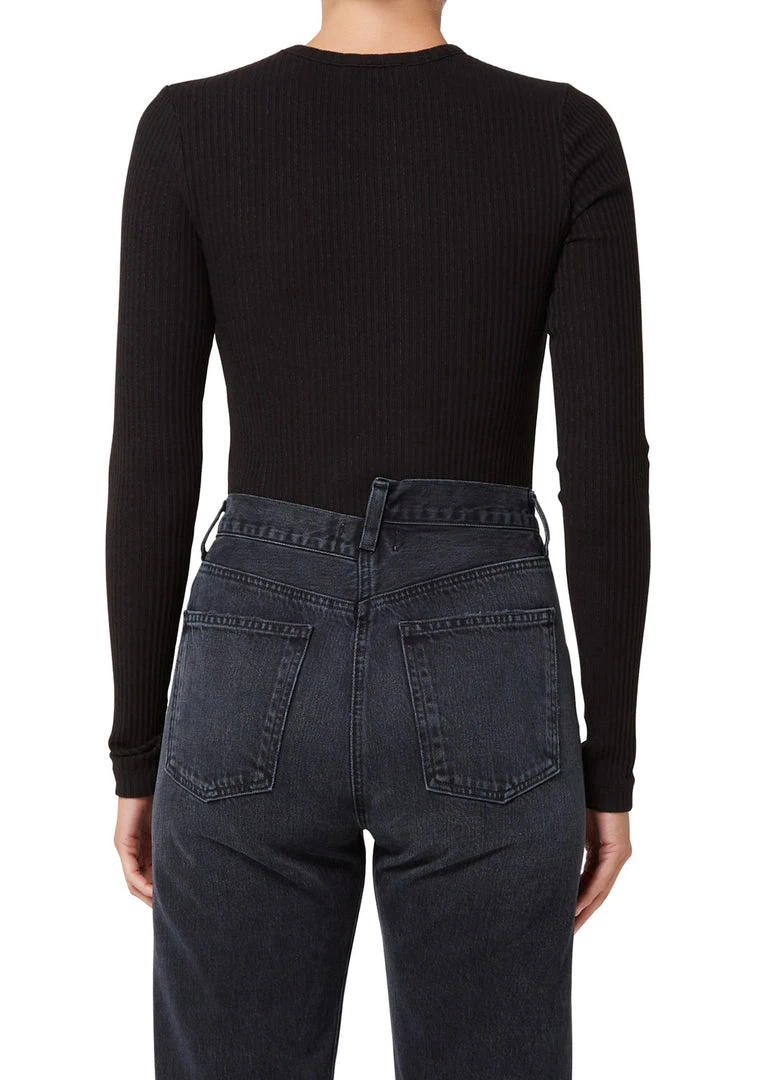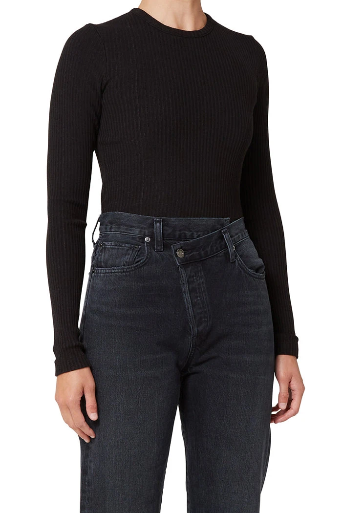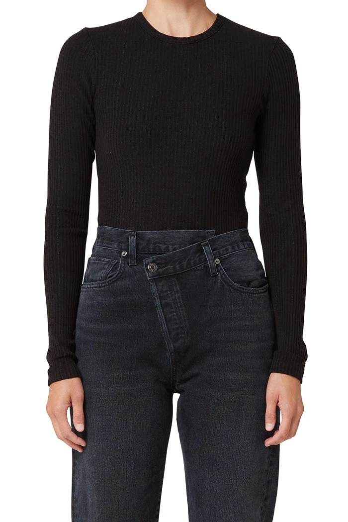 Agolde Alma shrunken crewneck ribbed cropped top in black.
