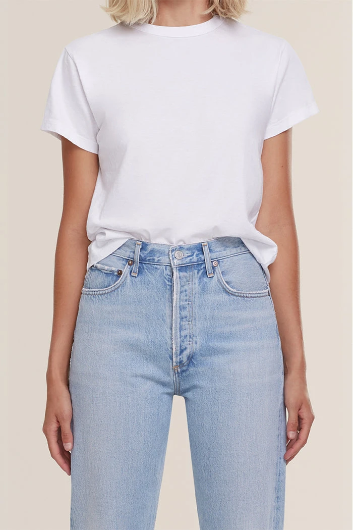 Agolde Rena super soft, crew neck, short sleeve t-shirt in white.
