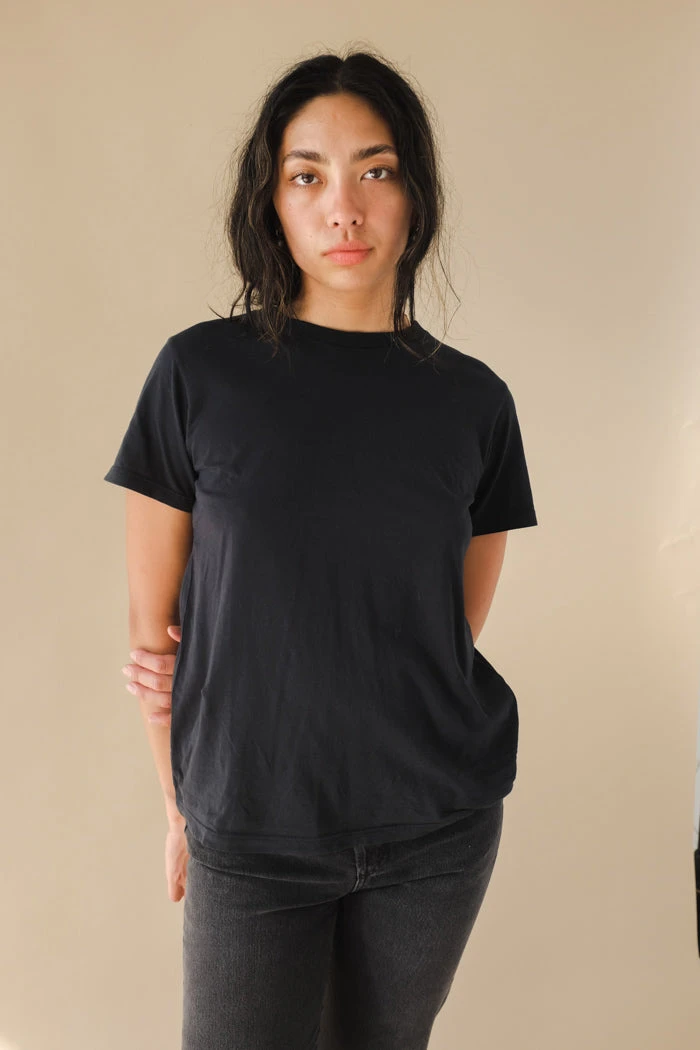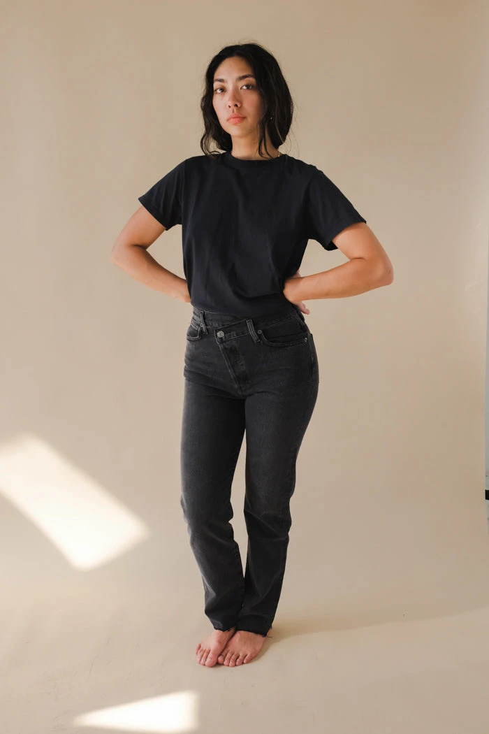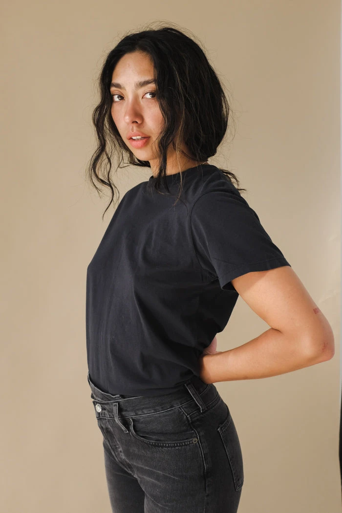 Agolde Rena super soft, crew neck, short sleeve t-shirt in nocturne washed black.Â
