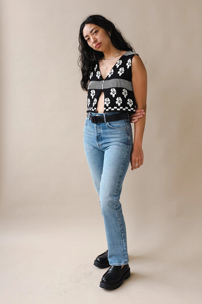 High Rise Relaxed Straight. Front Rise 12 3/4″. Inseam 29 1/2″. Leg Opening 15 3/4″. Model is 5’10” wearing a size 27.