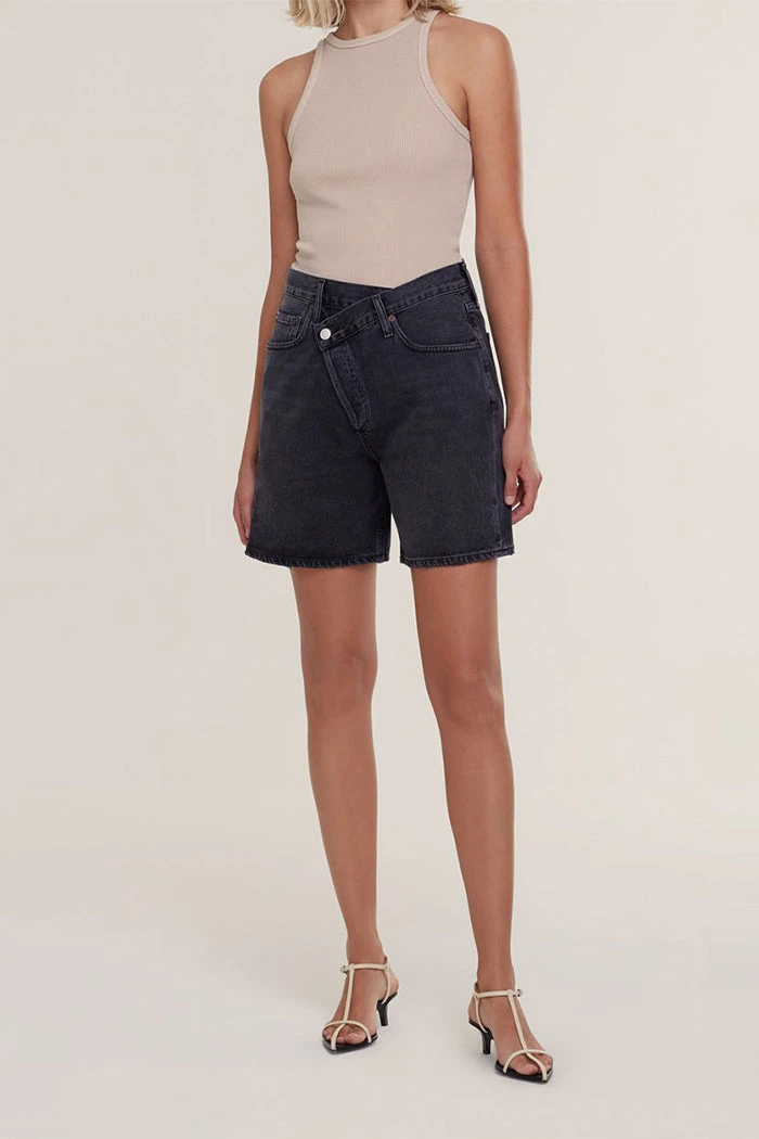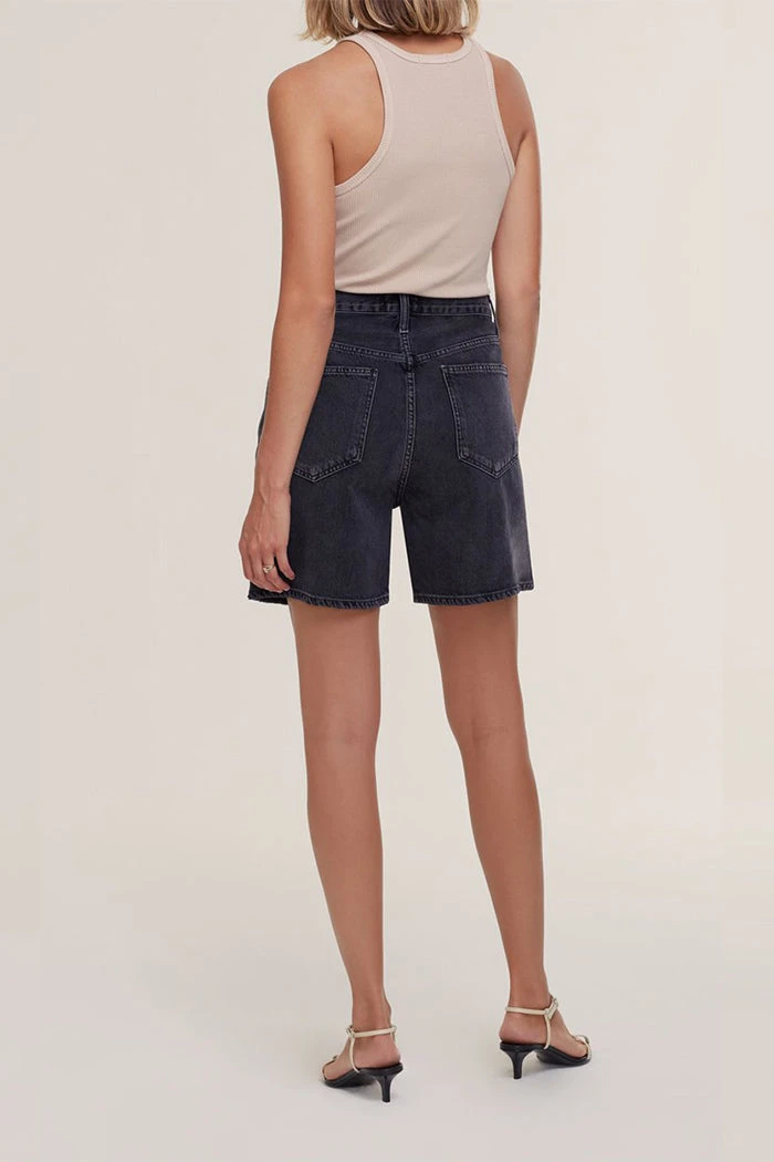 Agolde criss cross boyfriend fit denim shorts, in photogram washed black. Cut with an easy leg and clean finished hem. Can be styled rolled. Non stretch, button fly closure.