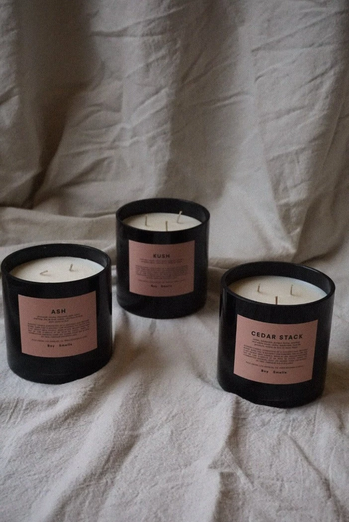 Boy Smells Ash, three wick, magnum 28 oz candle. Ash is now burning bigger and brighter for your extra long burning pleasure in 28oz Magnums.