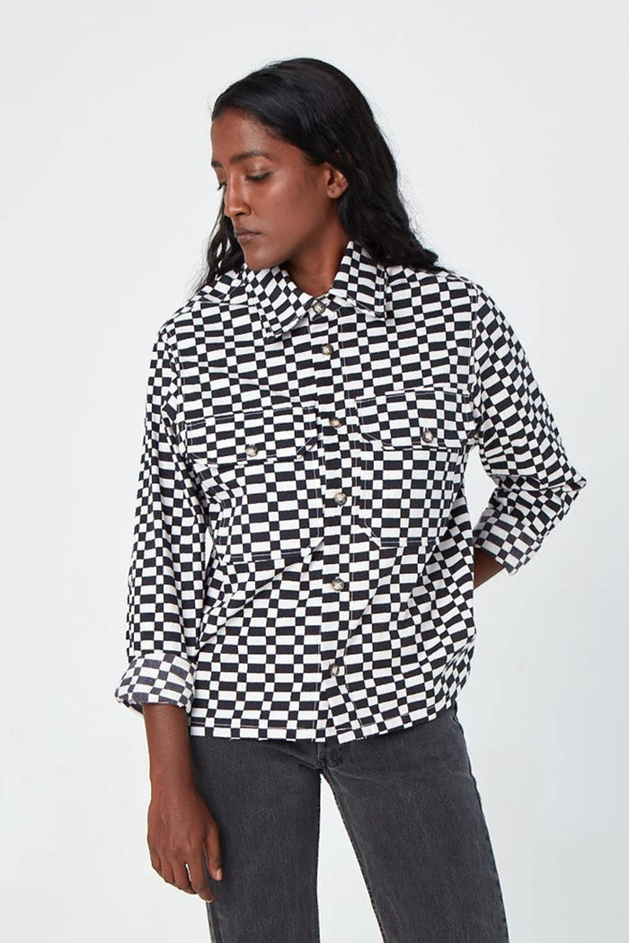 DUSHYANT LONG SLEEVE CHECKERED TOP