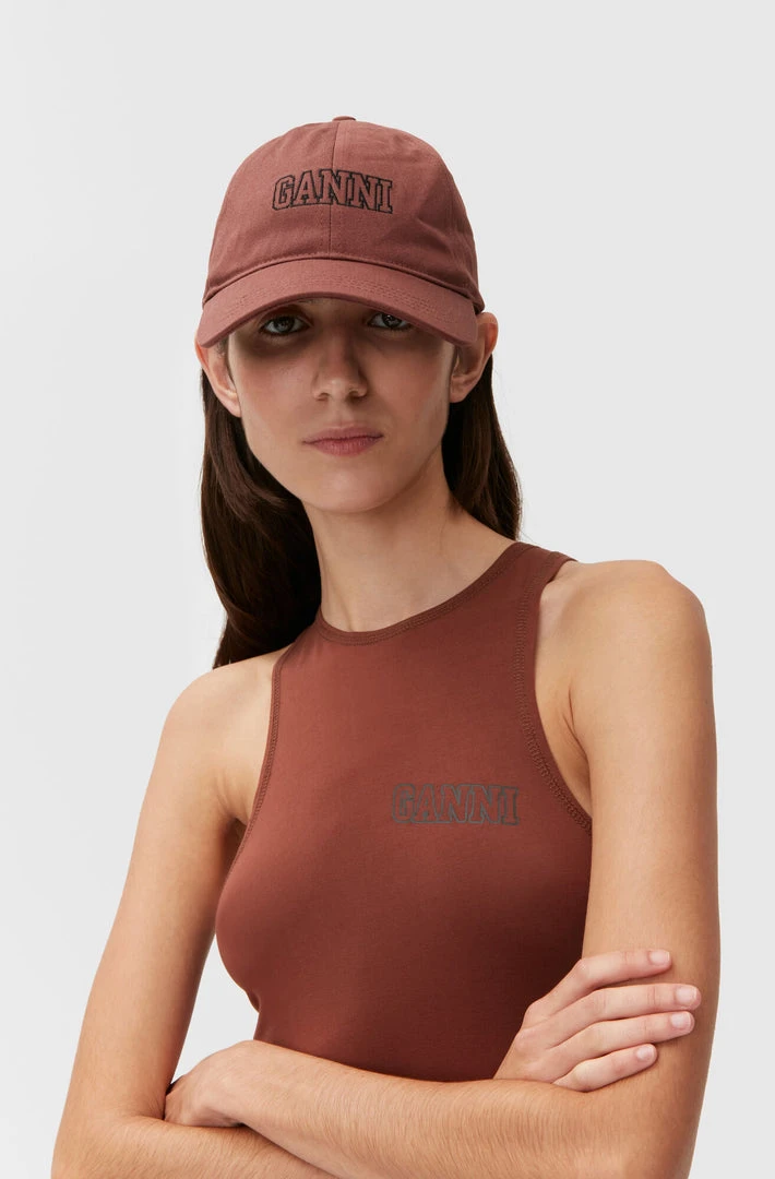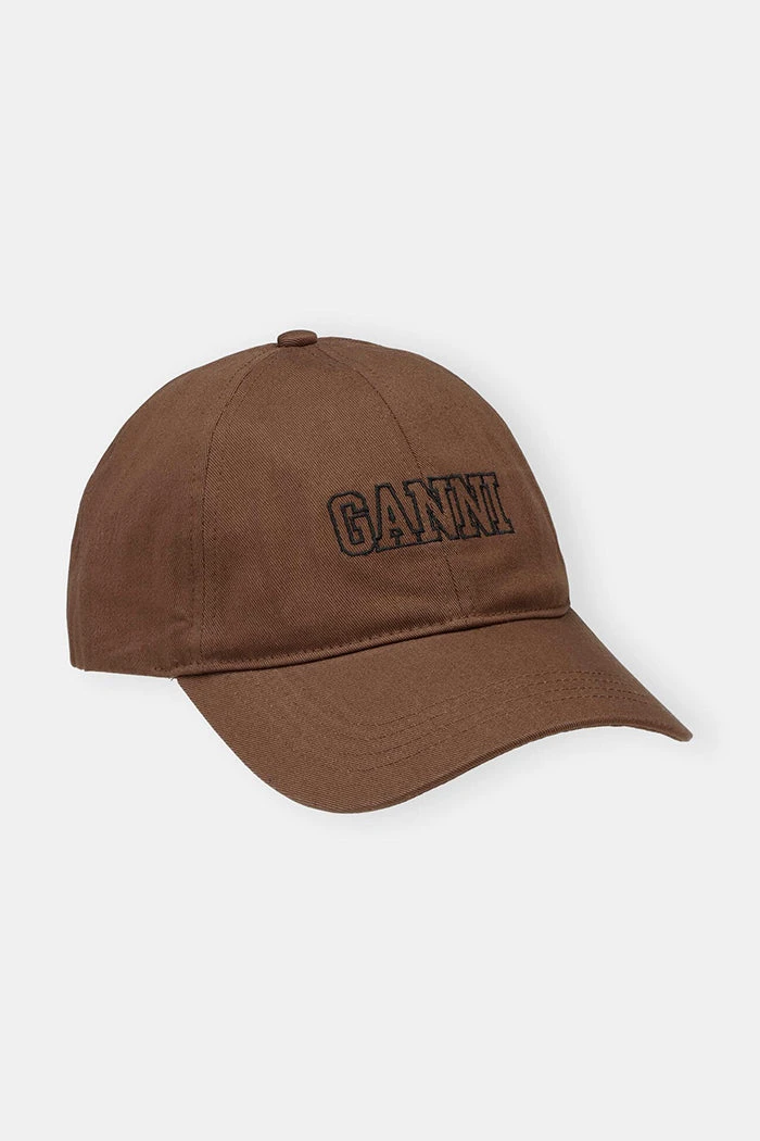 Ganni classic hat in root beer brown in thick, heavyweight cotton with twill texture.
