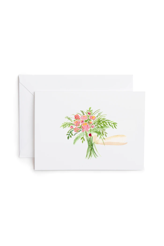 Watercolor gift of flowers greeting card by Good Sheila. This sweet card is 5×7, printed on quality uncoated paper and comes with a white envelope.