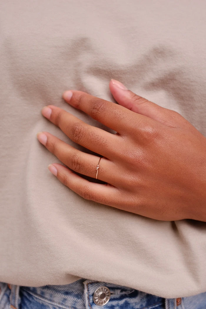 Tiny closed knot ring in hammered rose gold. An elegant and simple addition to your ring collection.