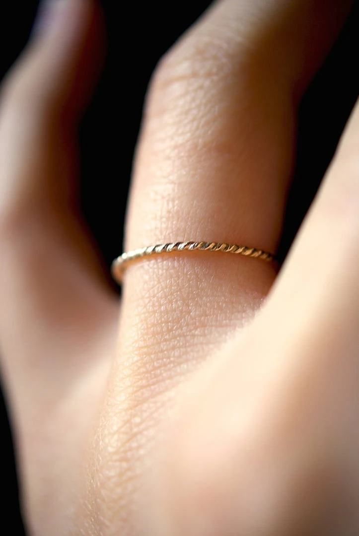 This delicate ultra thin twist stacking ring is perfect for stacking with your other rings or wearing on it’s own.