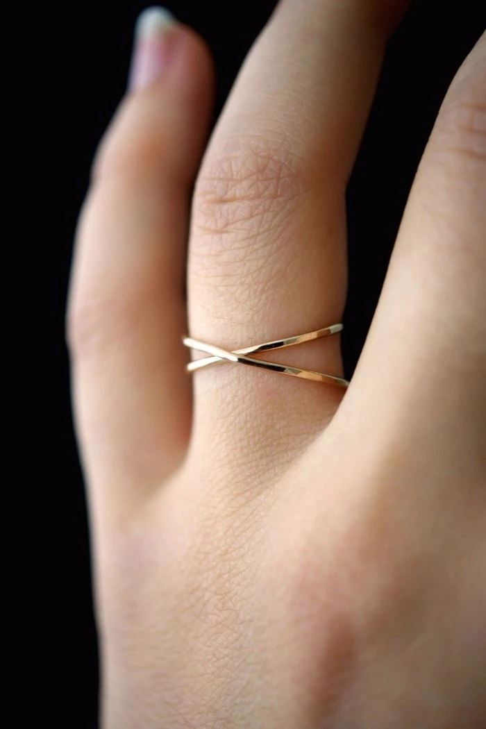 Hannah Naomi hammered X ring in 14k gold fill.