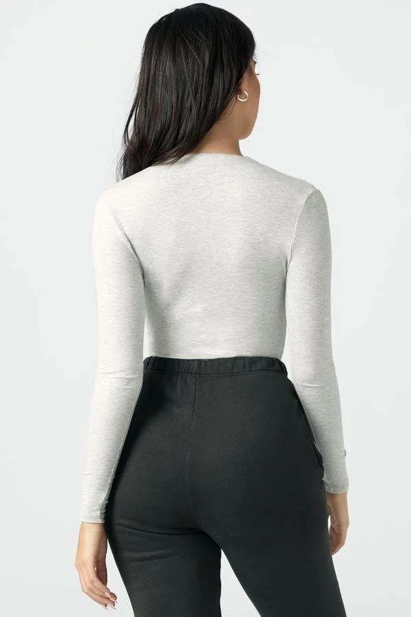 Joah Brown full length invisible zip long sleeve in pearl grey rib. Flexirib design with comfort in mind—soft, stretchy, and made to move with you.