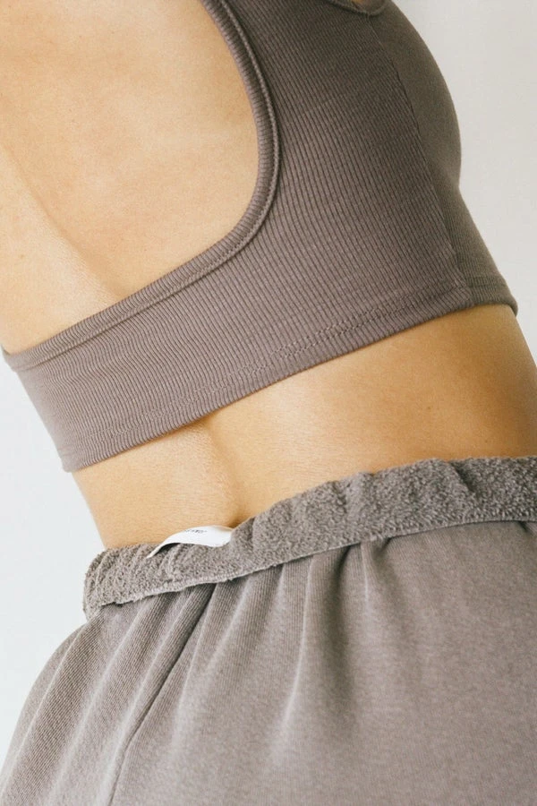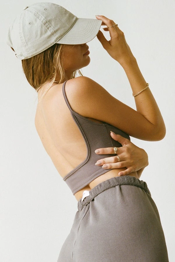 Joah Brown mauve deep low back cropped rib cami. Flexirib design with comfort in mind—soft, stretchy, and made to move with you.