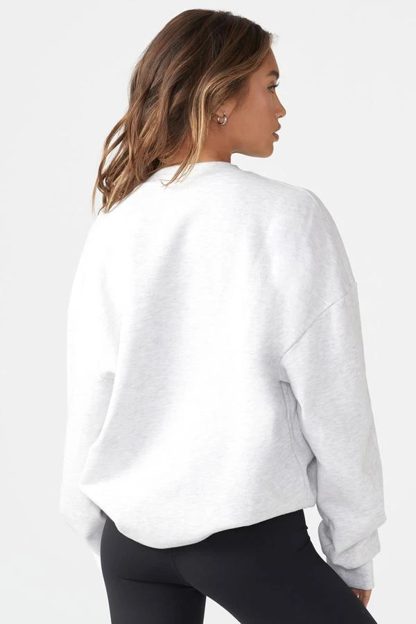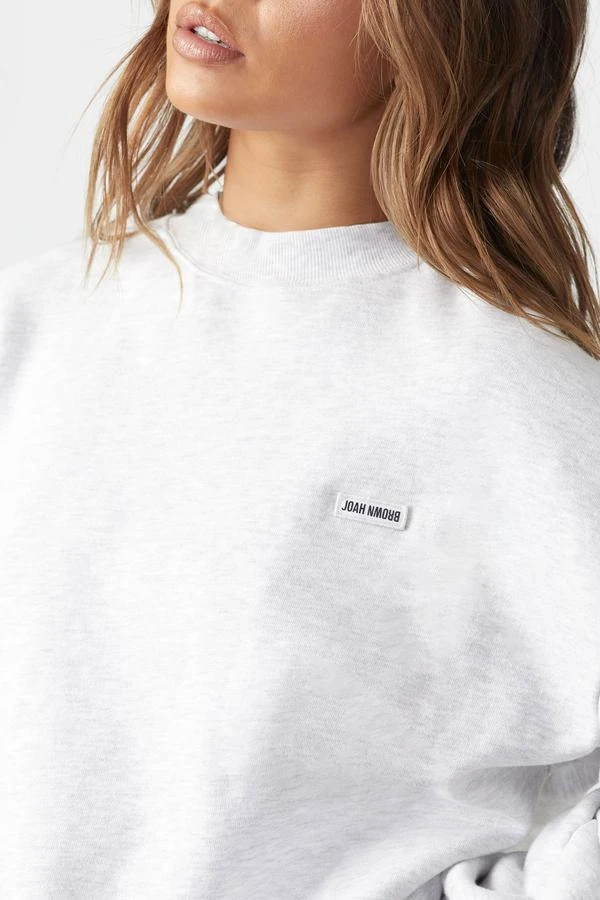 Joah Brown classic crew pullover in pearl grey. Classic oversized sweatshirt with a fitted mockneck, featuring a signature sewn on logo patch.