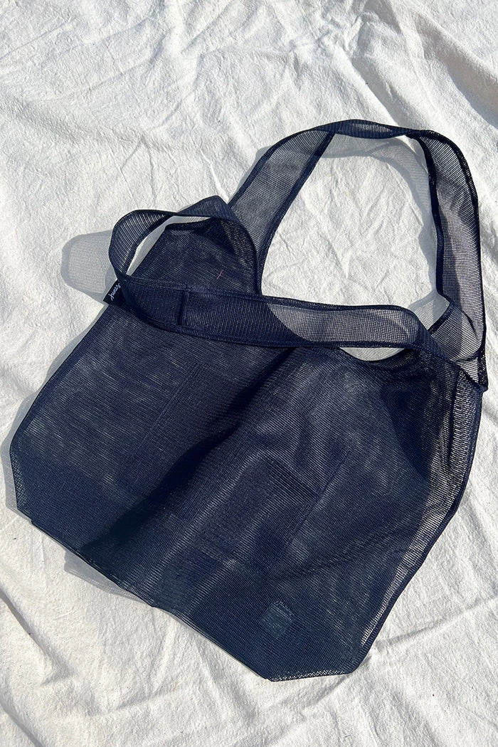 June’s everyday mesh tote in bio-knit deep navy blue. The Everyday Tote is good for any kind of day – from work and errands to beach and travel. Made in the U.S., our poly mesh is uniquely designed to hold the heaviest of loads. Inside all Everydays you’ll find two deep pockets for your wallet, phone, keys, and essentials. Folds up small for stashing and stowing.