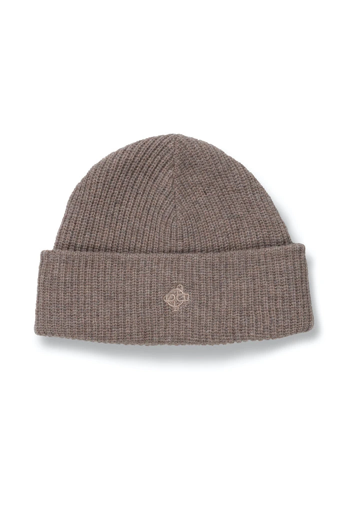 Just Cloudy ribbed beanie in Falcon taupe brown.