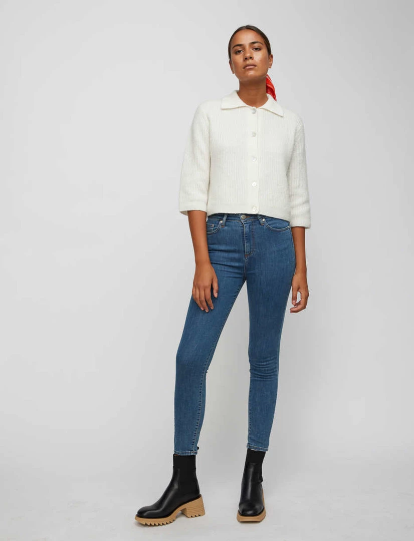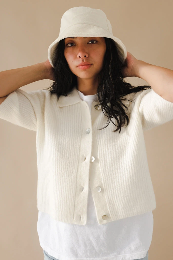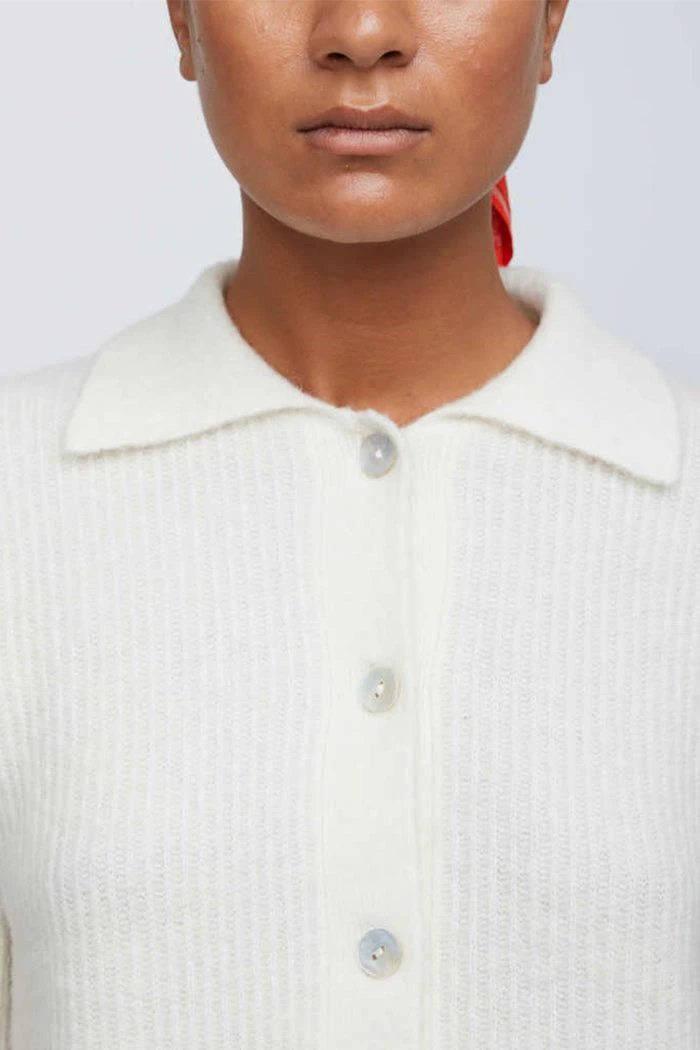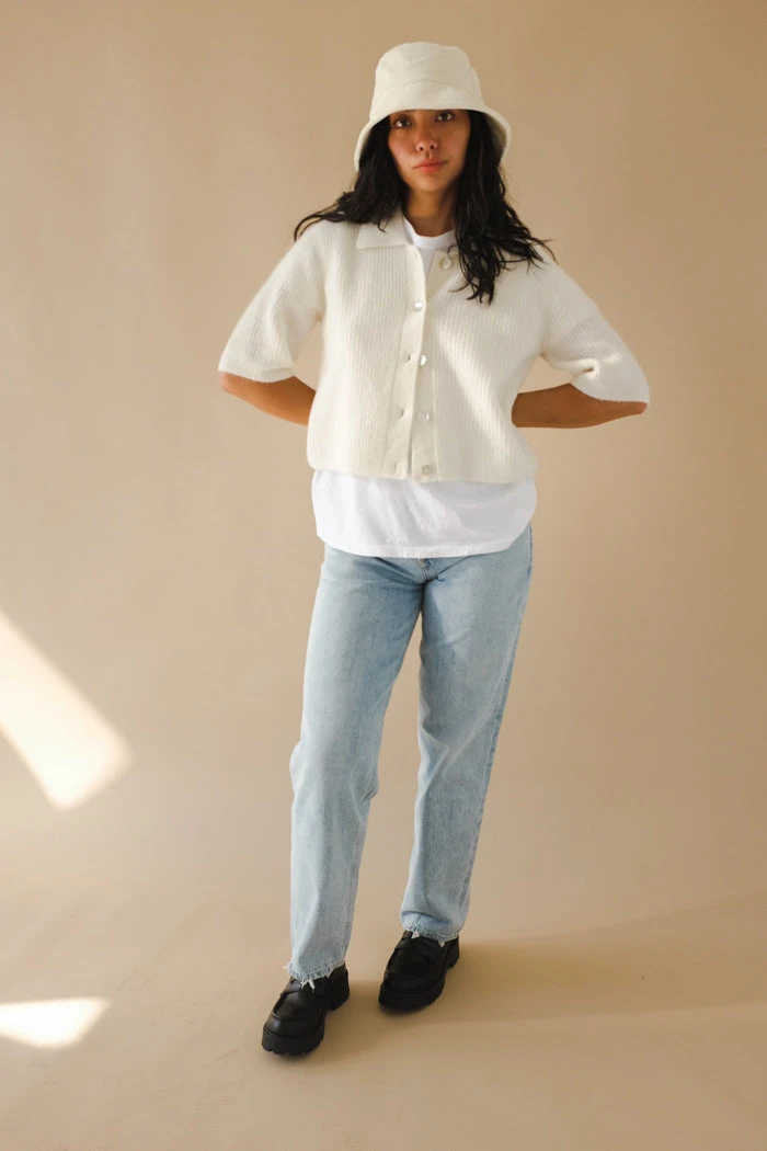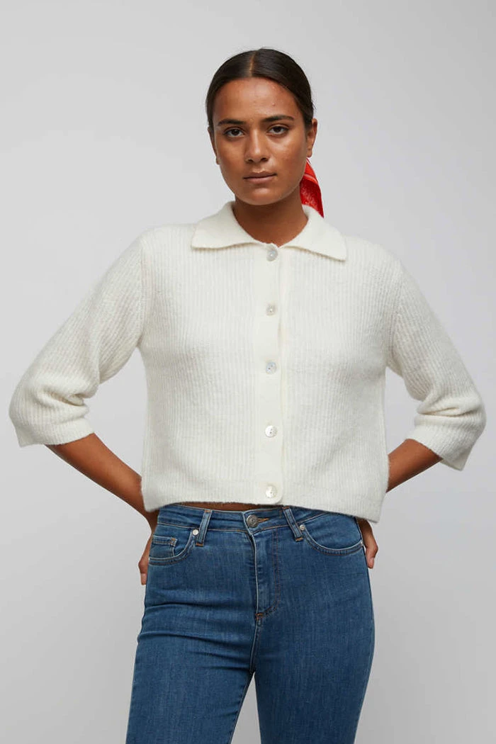 Just Female Rebelo short sleeve cardigan in ivory buttercream.