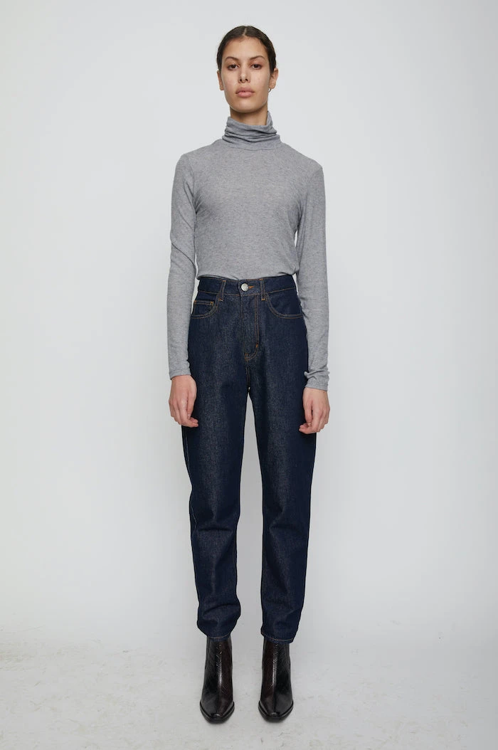 Just Female Millie long sleeve turtleneck thin tee shirt in grey melange.