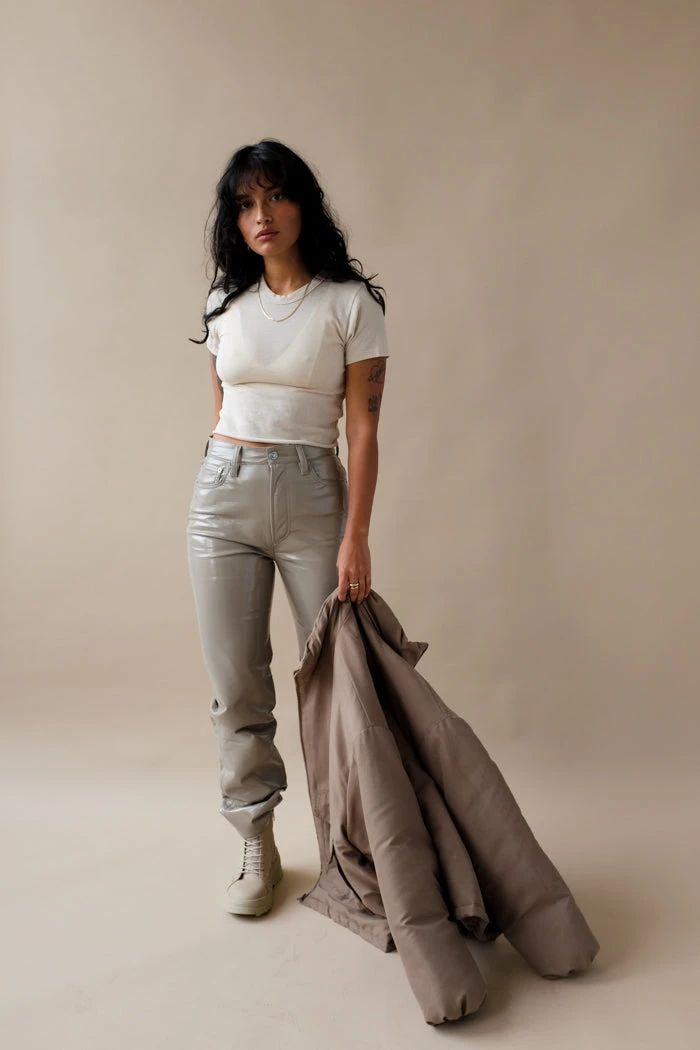 Lacausa baby Smith tee in sea salt light tan. This super soft shrunken tee is made of an organic cotton, recycled poly blend that gives it a slightly heathered look and the softest handfeel.