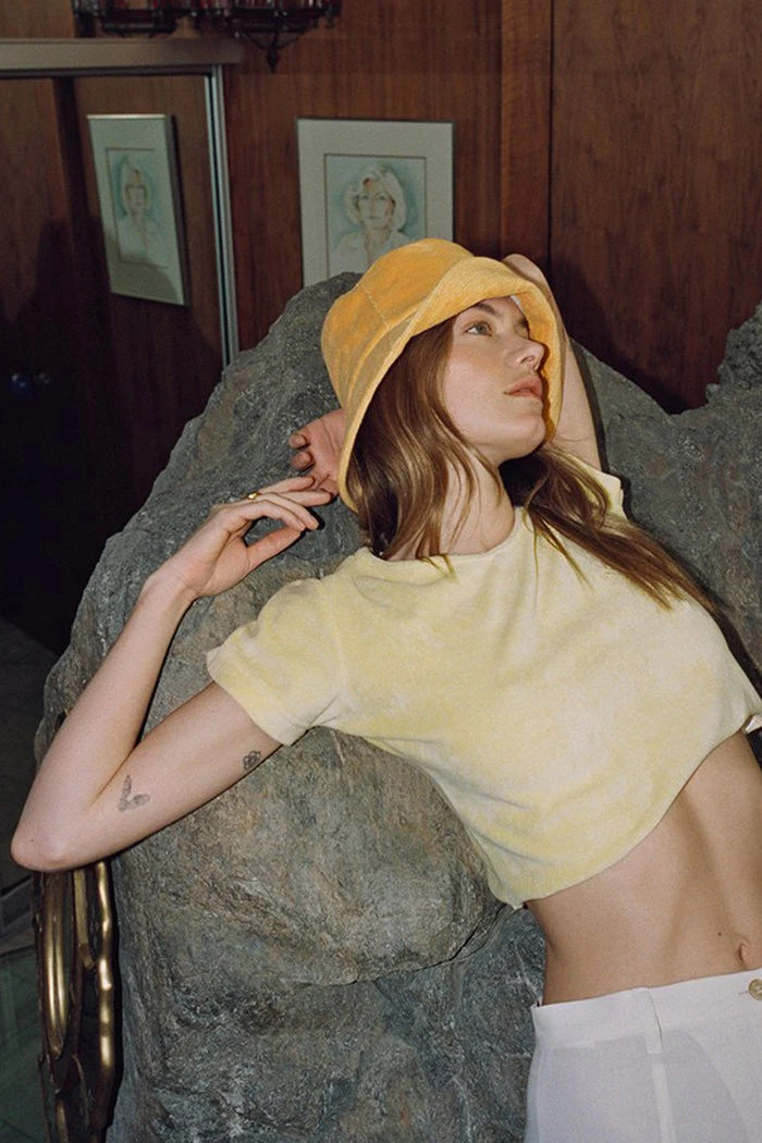 Lack of Color Wave bucket hat in tangerine orange terrycloth. Cool and simple bucket hat. Throw on this easy to wear style for a sun-safe, street look.