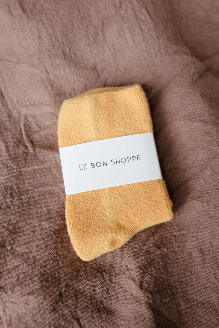 Le Bon Shoppe comfy, cozy, terry cloth Cloud socks in buttery yellow.