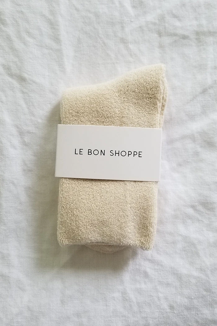 Le Bon Shoppe comfy, cozy, terry cloth Cloud socks in ecru.