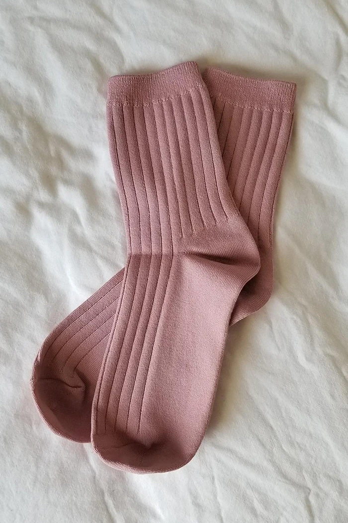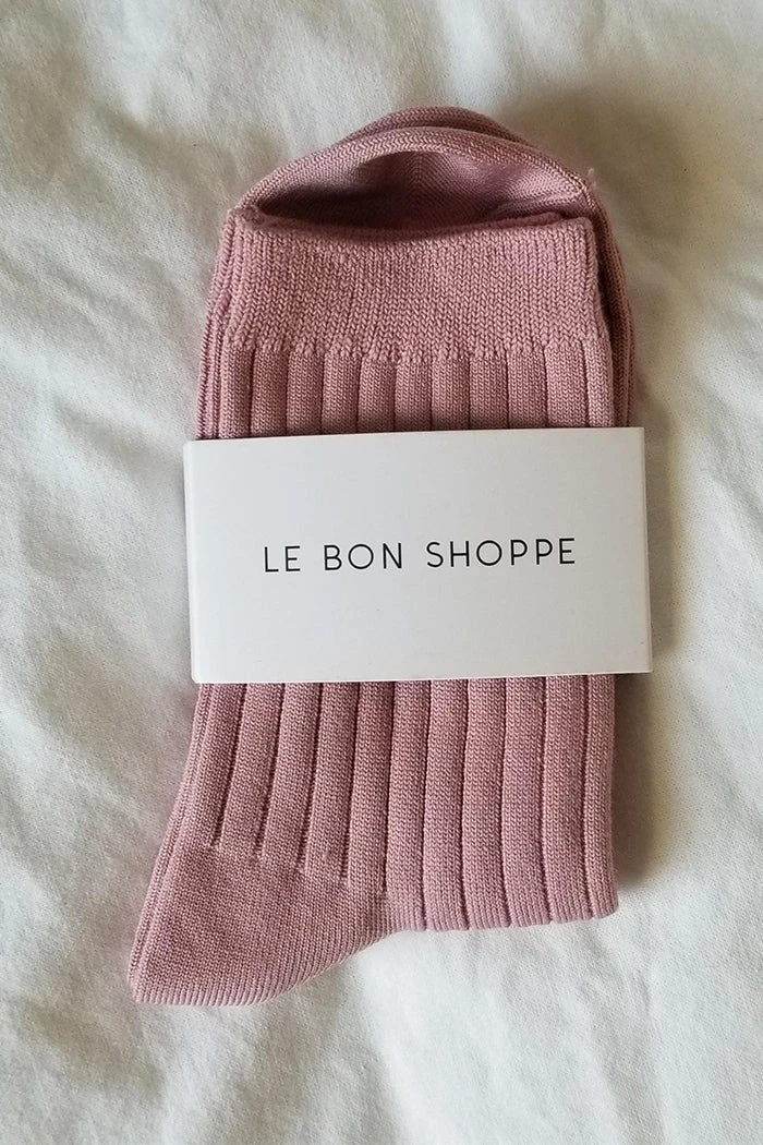 Le Bon Shoppe Her socks in desert rose nude pink are the perfect height knit rib socks.