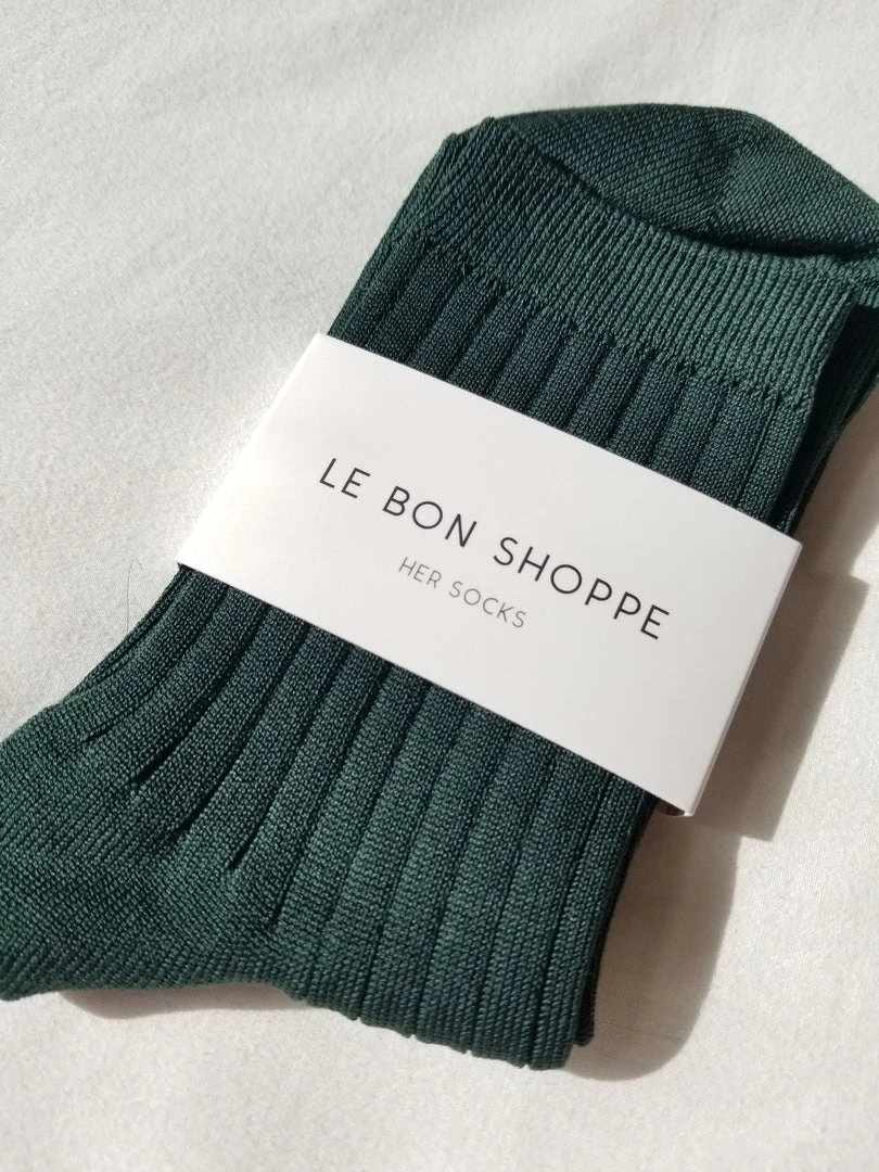 Le Bon Shoppe Her socks perfect height knit rib socks in peacock green.