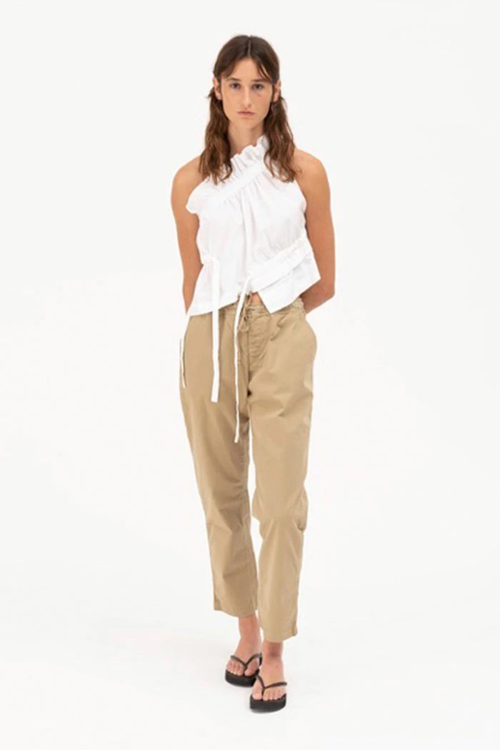 Mundaka Ruffle one shoulder top in white. Adjustable ties, to sinch the top in or make it more flowy.