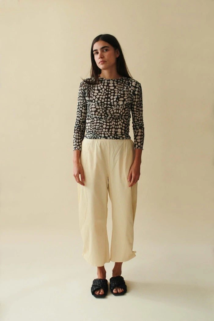 Nin Studio black cosmos Swirl mesh long sleeve top. Lettuce hem.Â