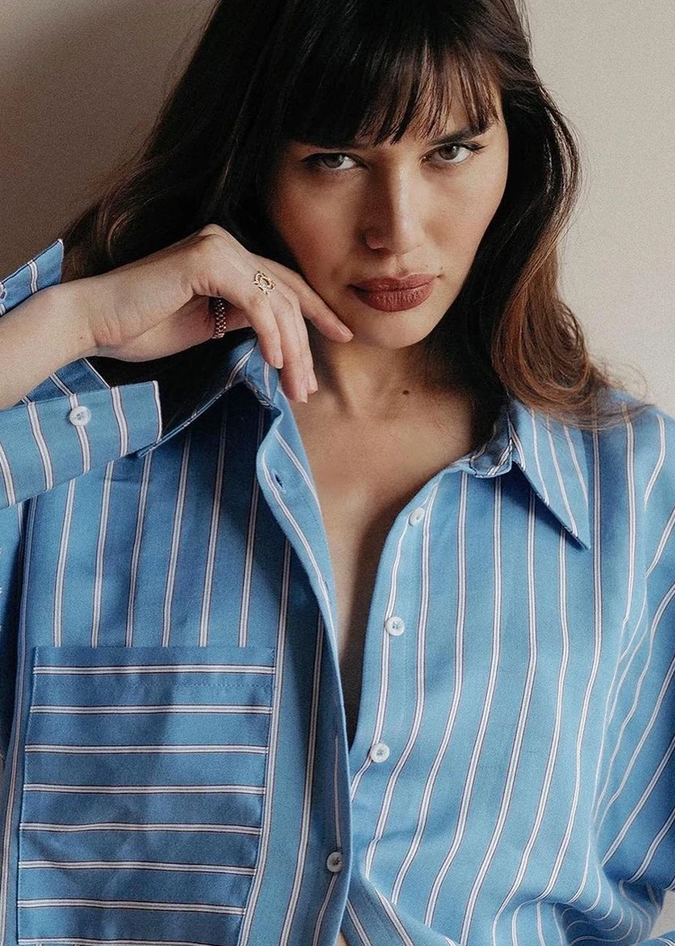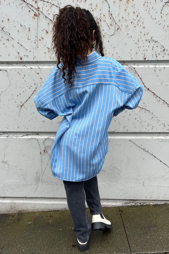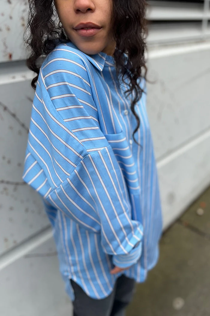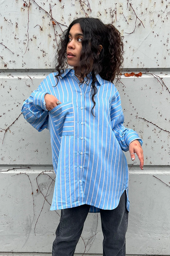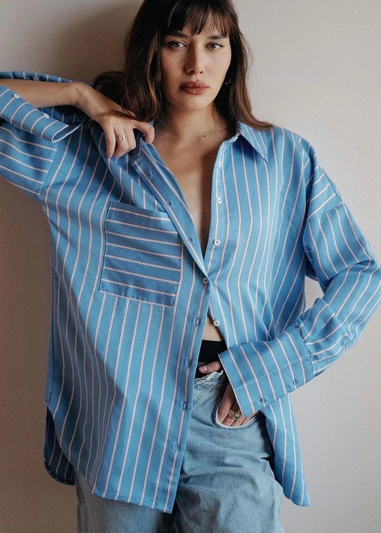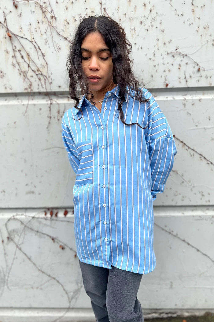 OhSevenDays Samantha drop sleeve oversized shirt with single chest pocket, featuring extra long poet cuffs.