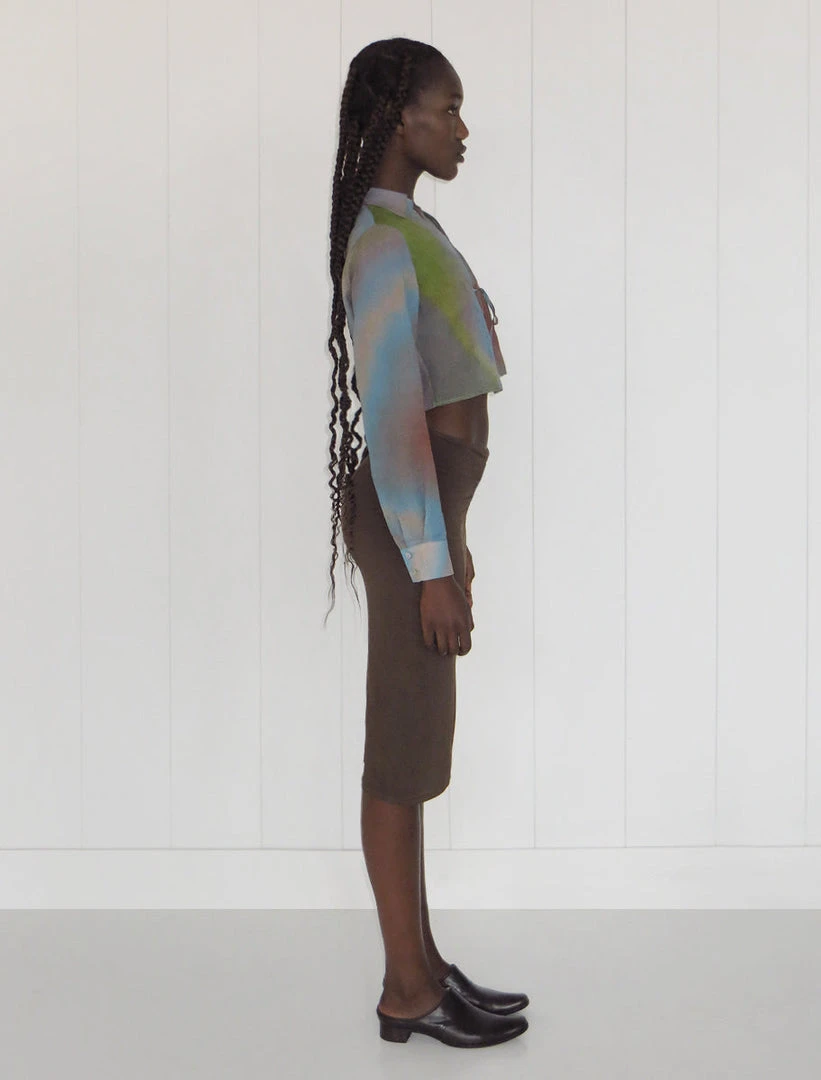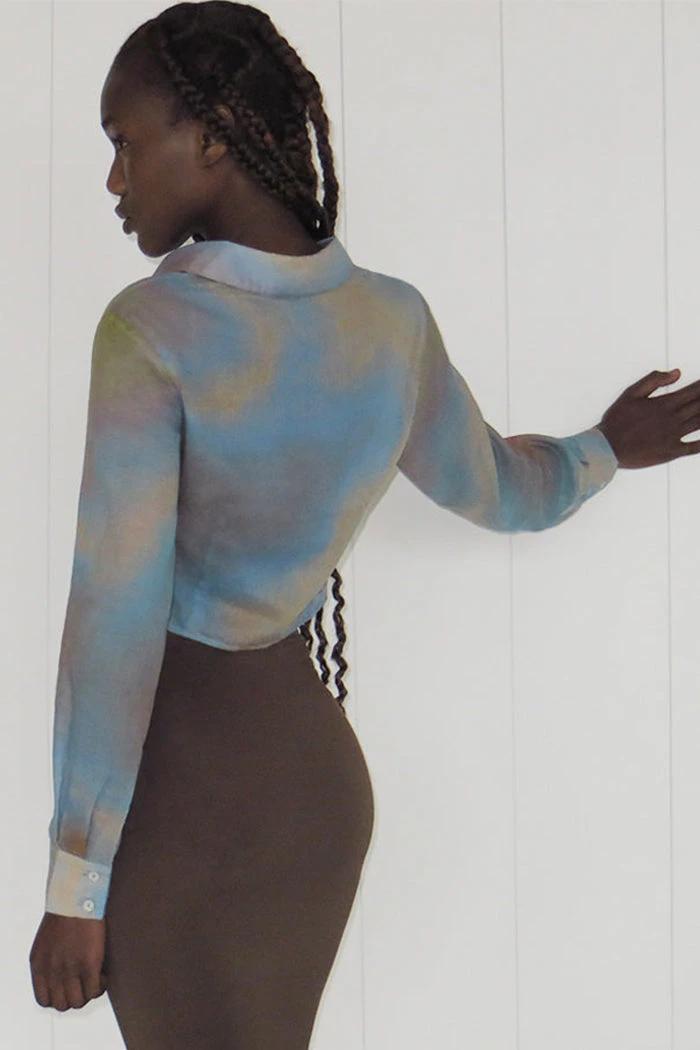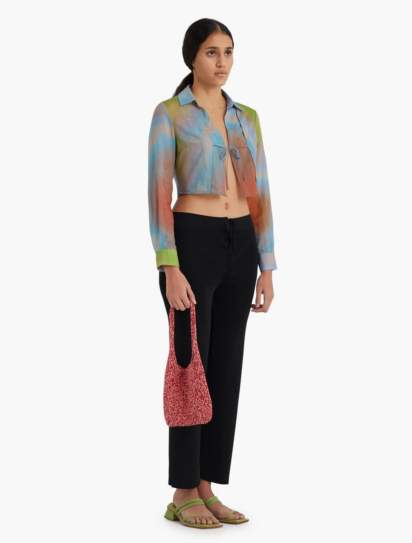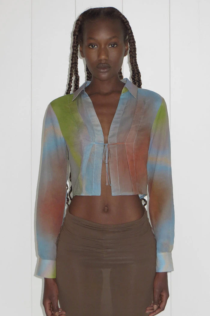 Paloma Wool collared Carolee long sleeve colorful print with front lacing. Print by Nika Milano.