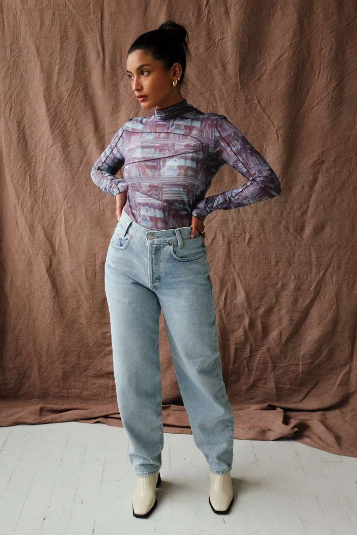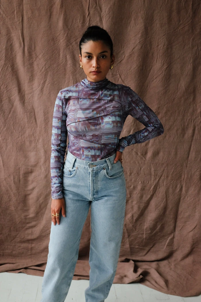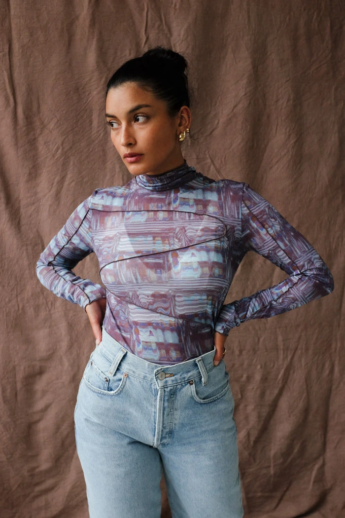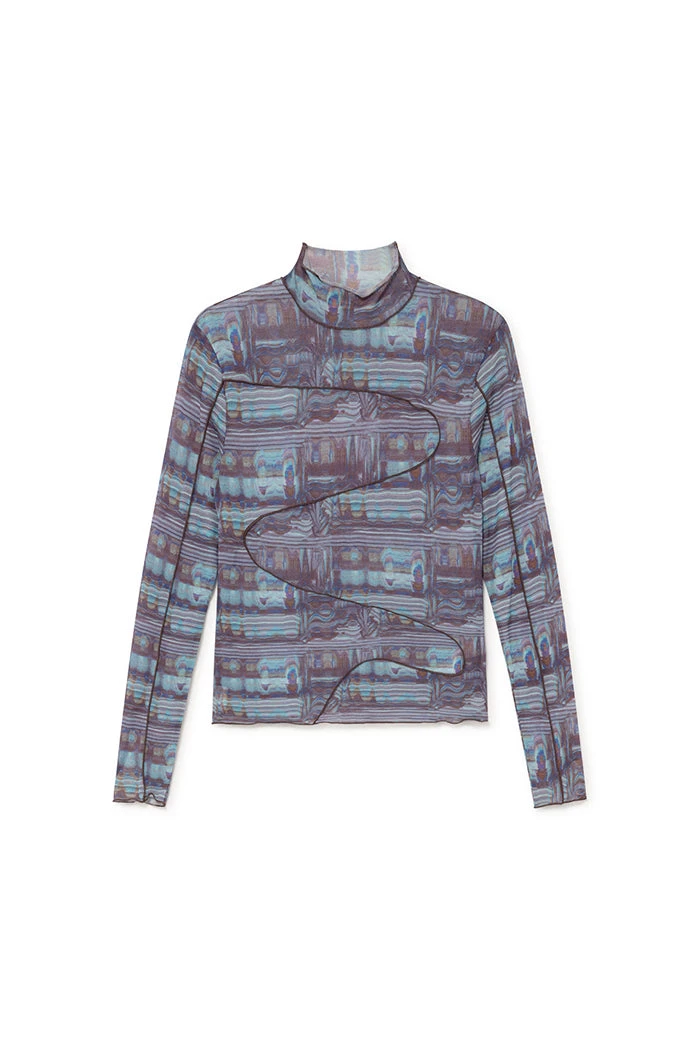 Paloma Wool Cometa long sleeve printed, semi transparent t-shirt, with irregular baby overlocked seams. Scanned print