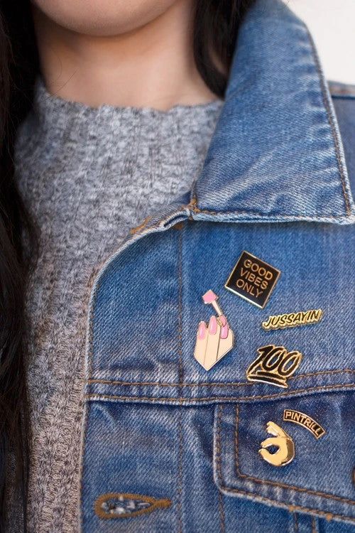 Pintrill trill enamel pin in gold metal with black enamel and black rubber backing.