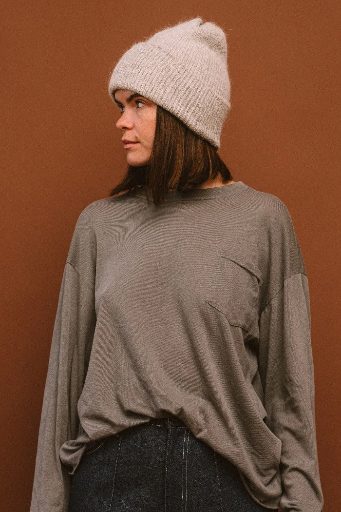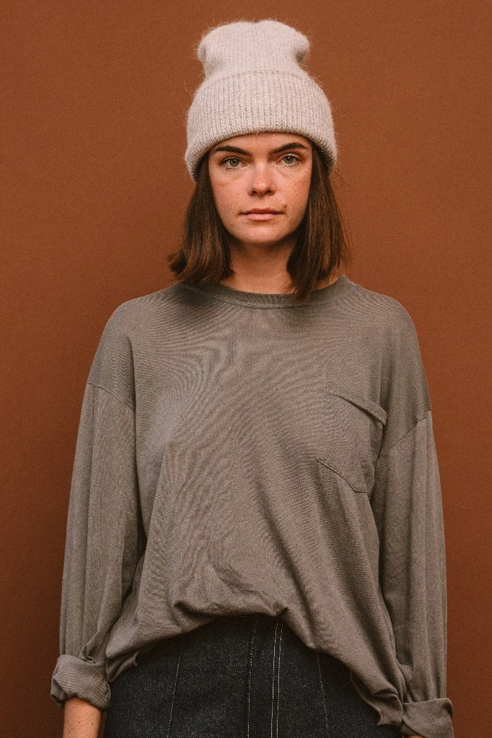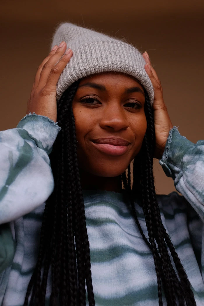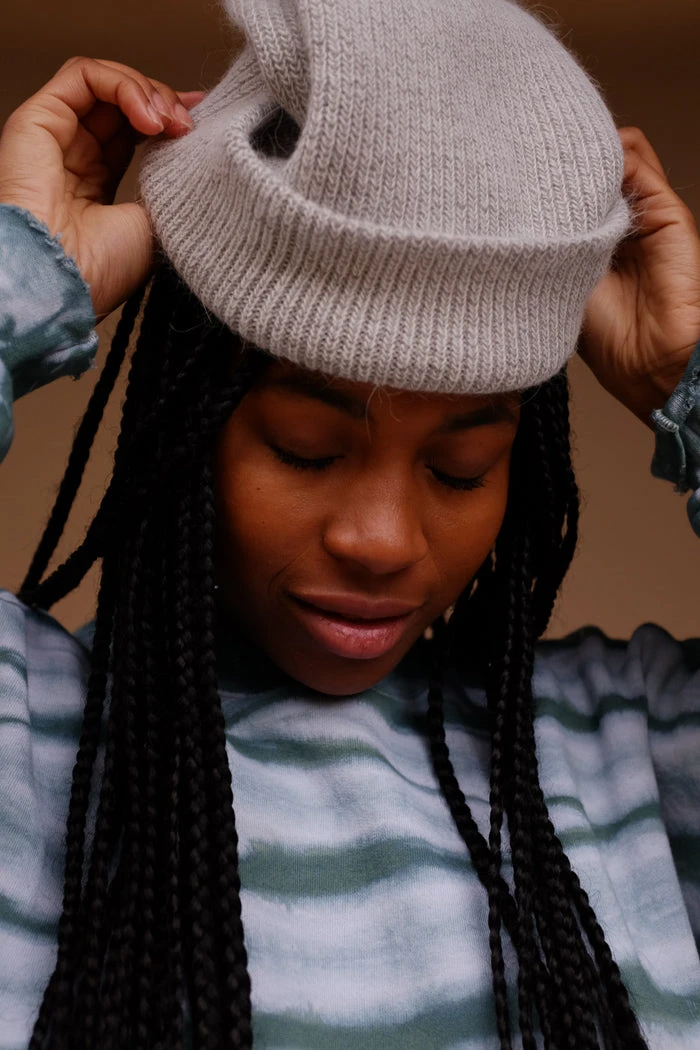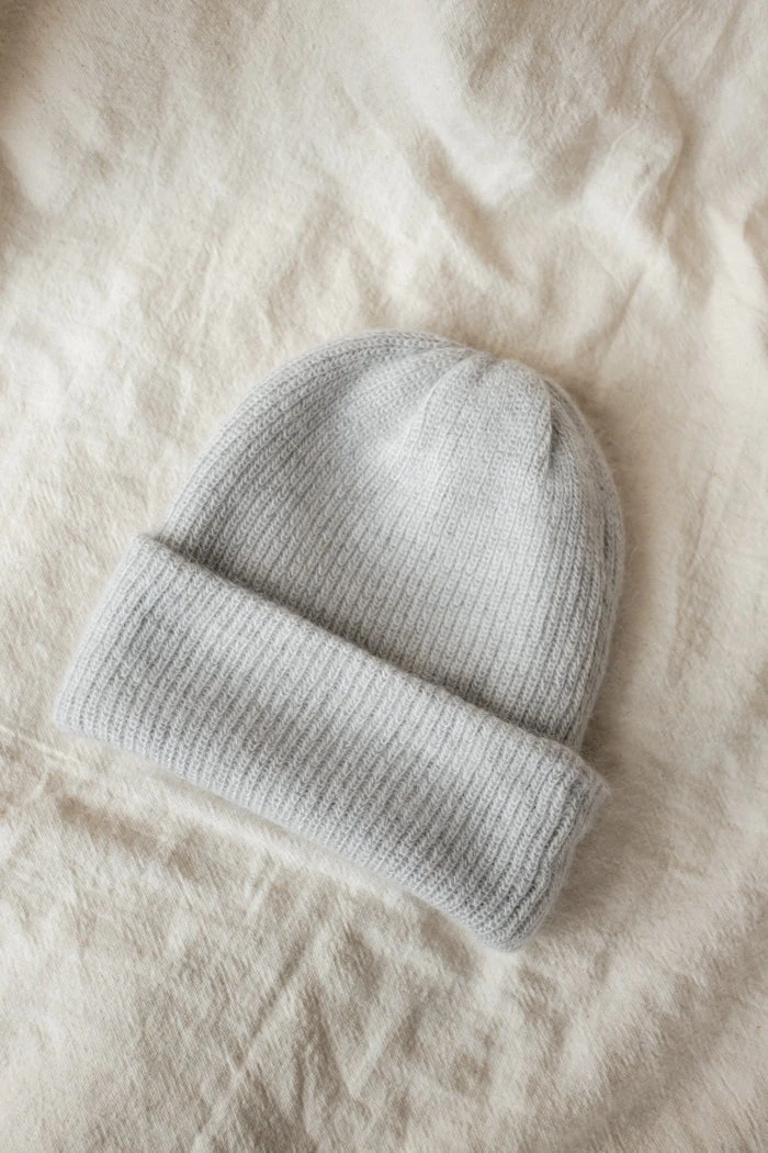 Smith knit light grey beanie is the perfect fuzzy beanie for the winter.