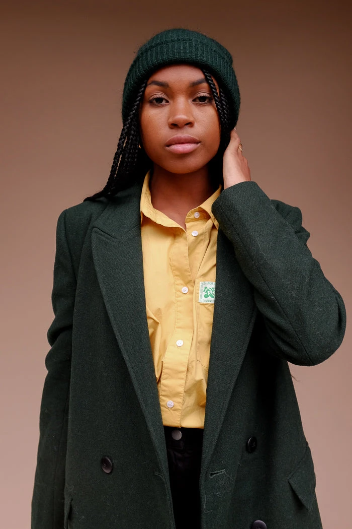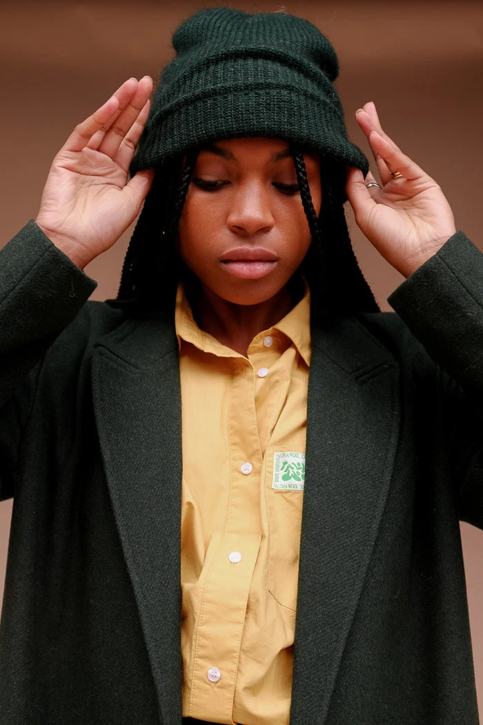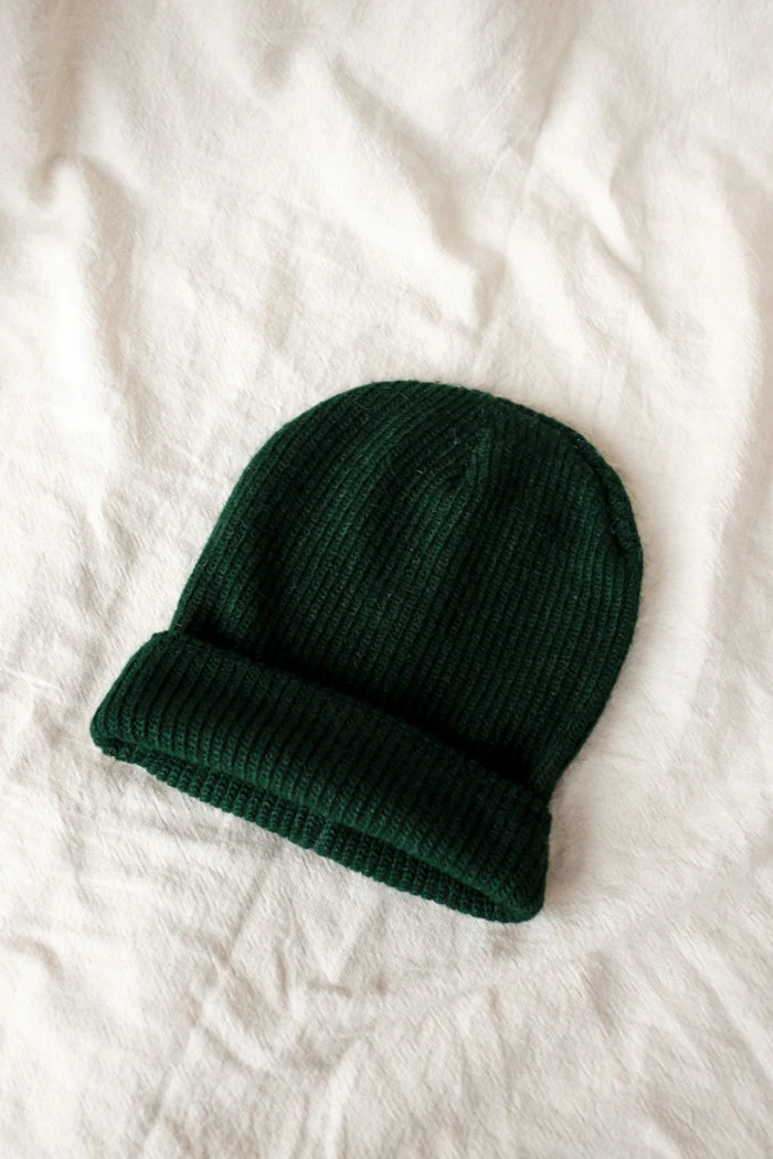 Smith knit dark pine green beanie is the perfect fuzzy beanie for the winter.
