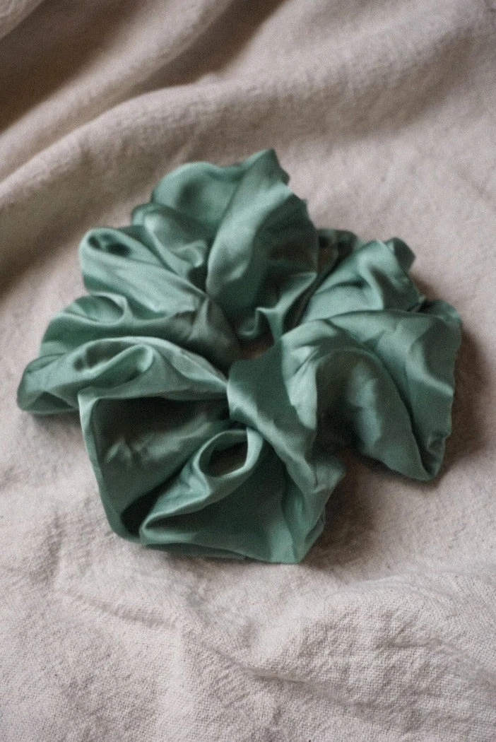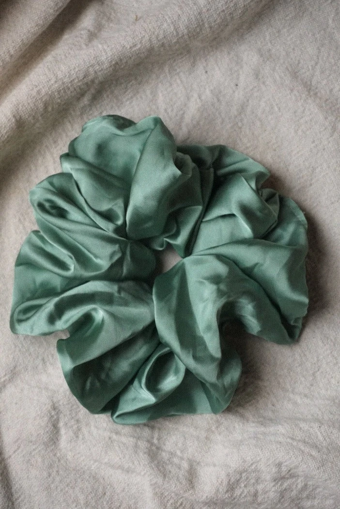 Silky oversized silky sage green satin scrunchy.