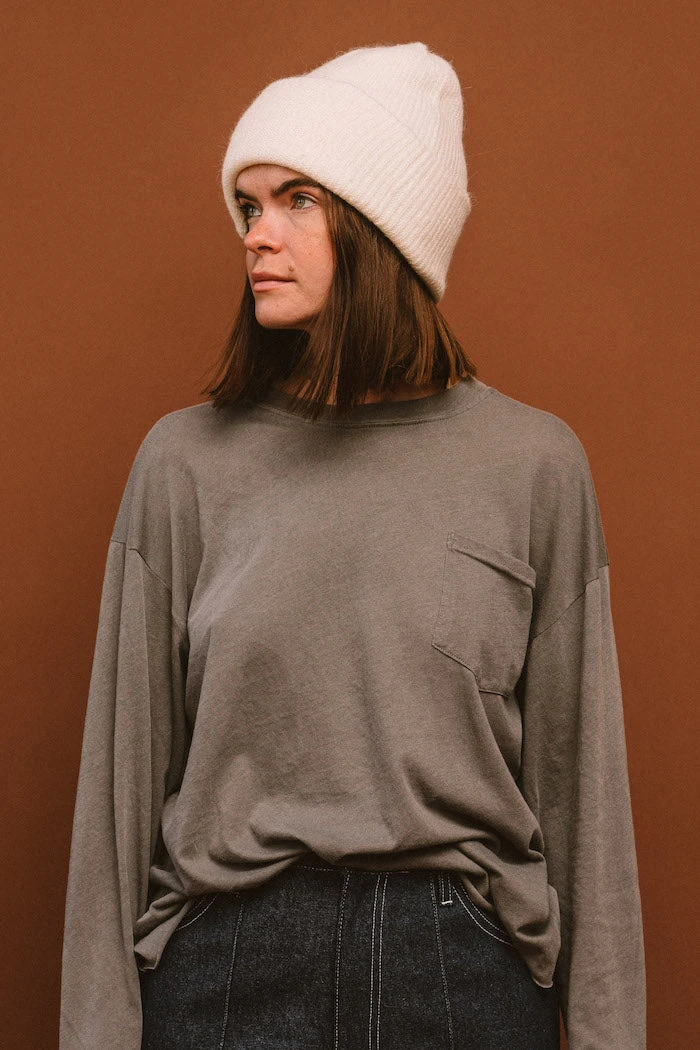Smith knit white beanie is the perfect fuzzy beanie for the winter.