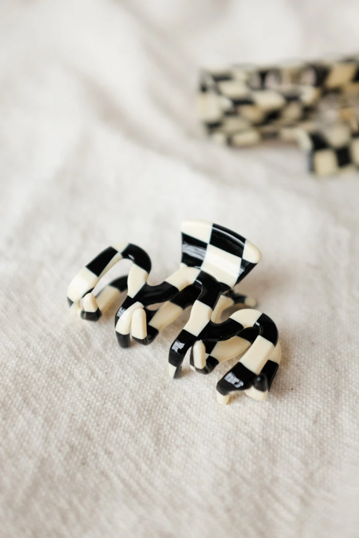 Small black and white zig zag checkered hair claw.