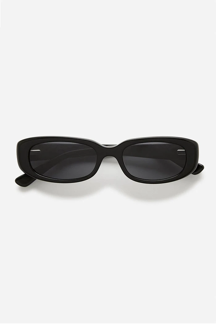 Raie eyewear Jacquie sunglasses in black. She’s feminine, flirty and seductive. This micro shade is exceptional when it comes to people watching. Weather forecast? Sunny with a chance of 1996.