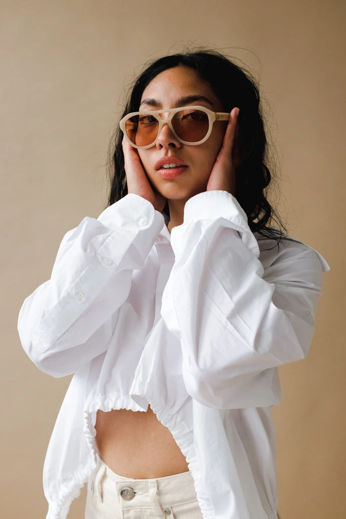 Raie eyewear Steve aviator 70’s style sunglasses in latte.