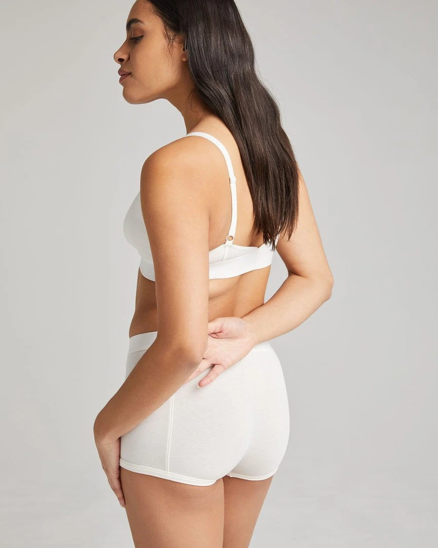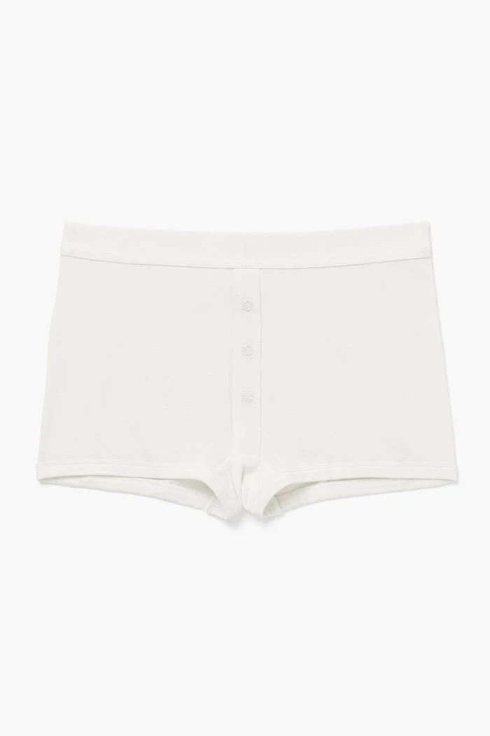 Richer Poorer bone boxer briefs in bone. Soft elastic waistband, faux snap detail at front, ultra-soft modal cotton blend, shrink resistant.