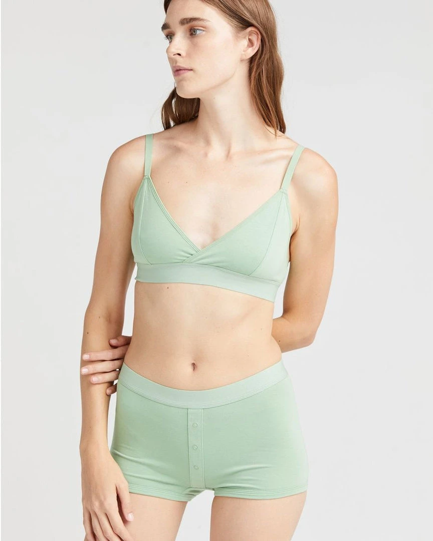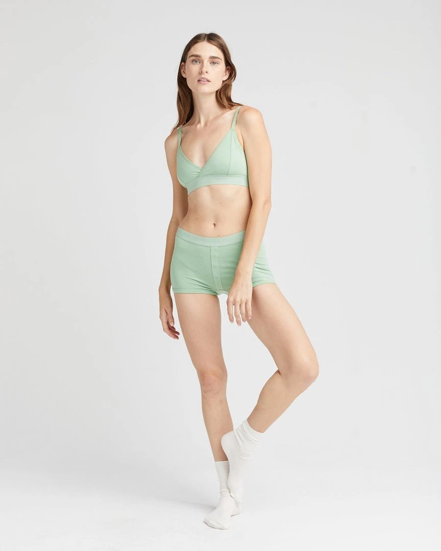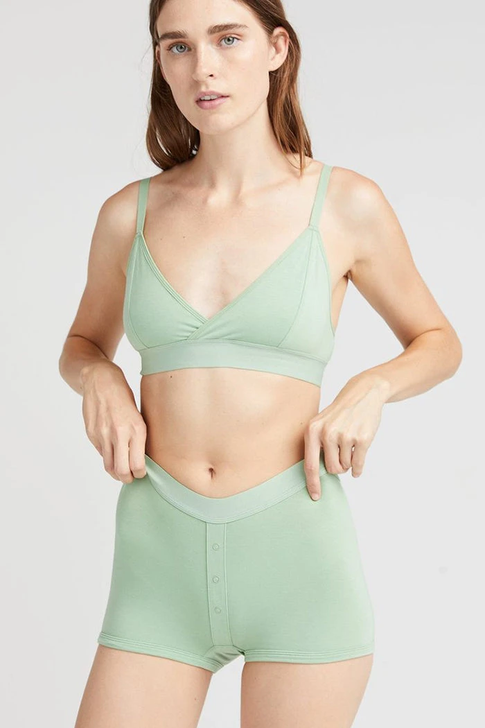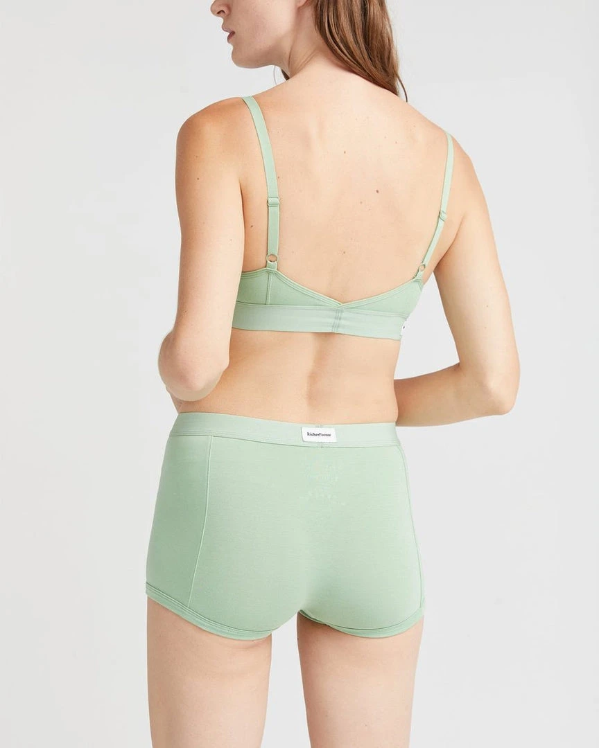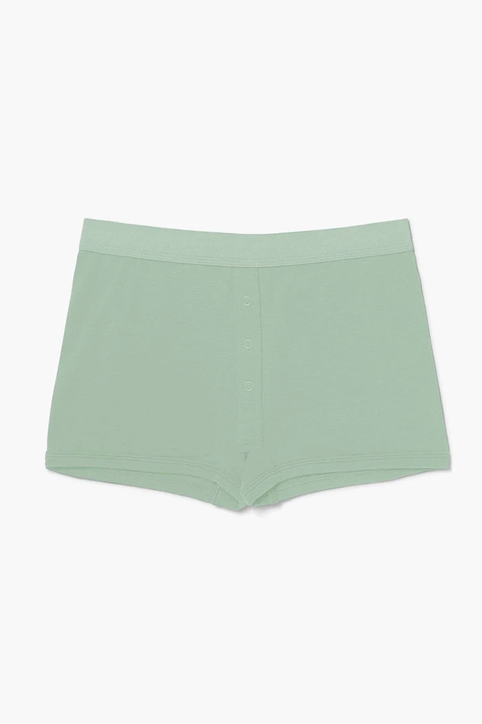 Richer Poorer sage green boxer briefs. Soft elastic waistband, faux snap detail at front, ultra-soft modal cotton blend, shrink resistant.