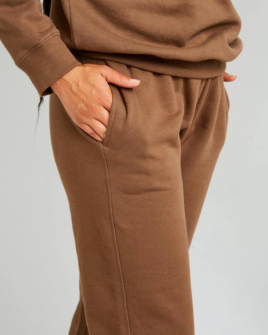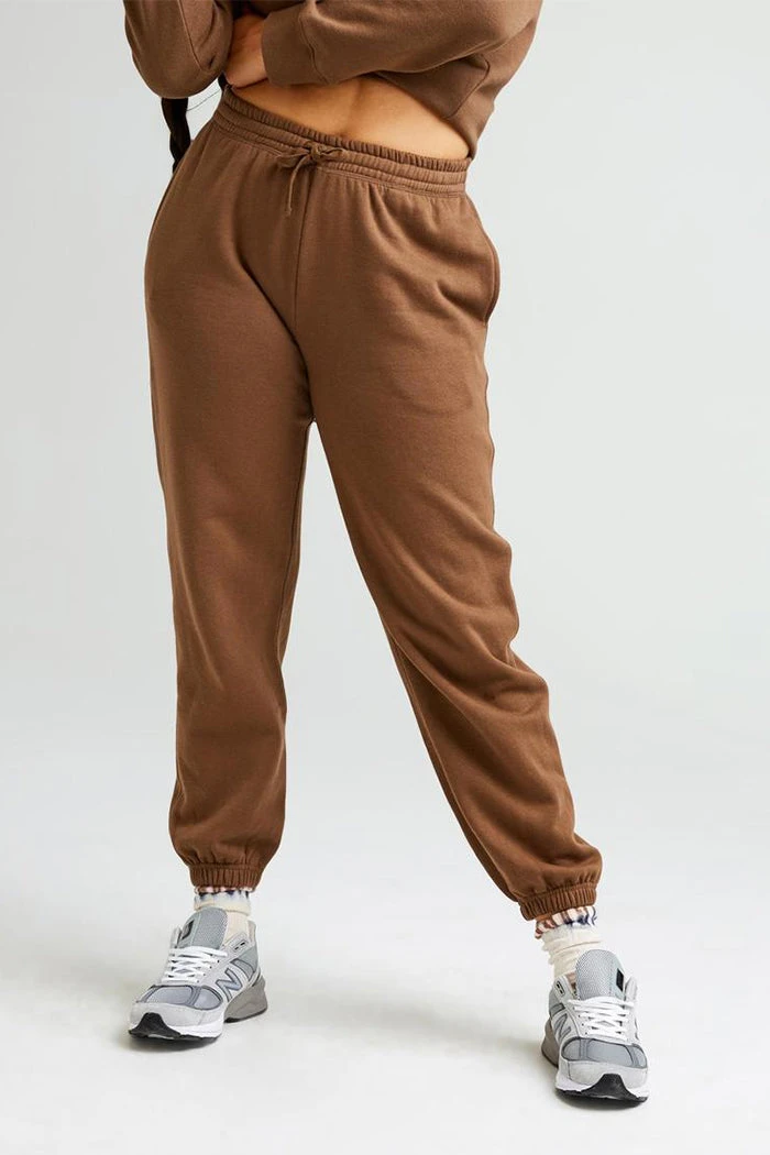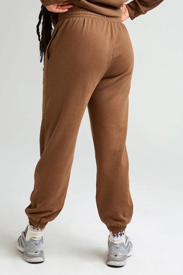 Richer Poorer recycled fleece cub brown, jogger style sweatpants in super soft—but thick, broken in fabric. Classic fit, encased elastic waist and leg openings, silicone softened for broken-in feel, side seam pockets.Â