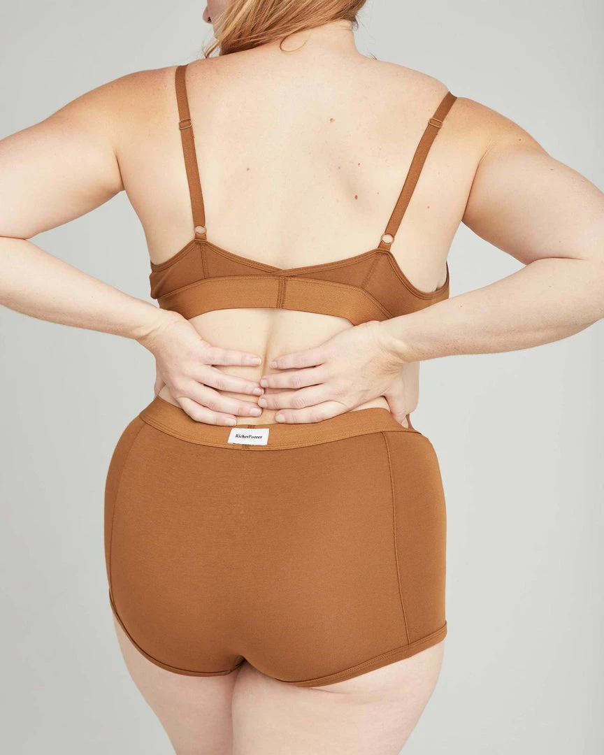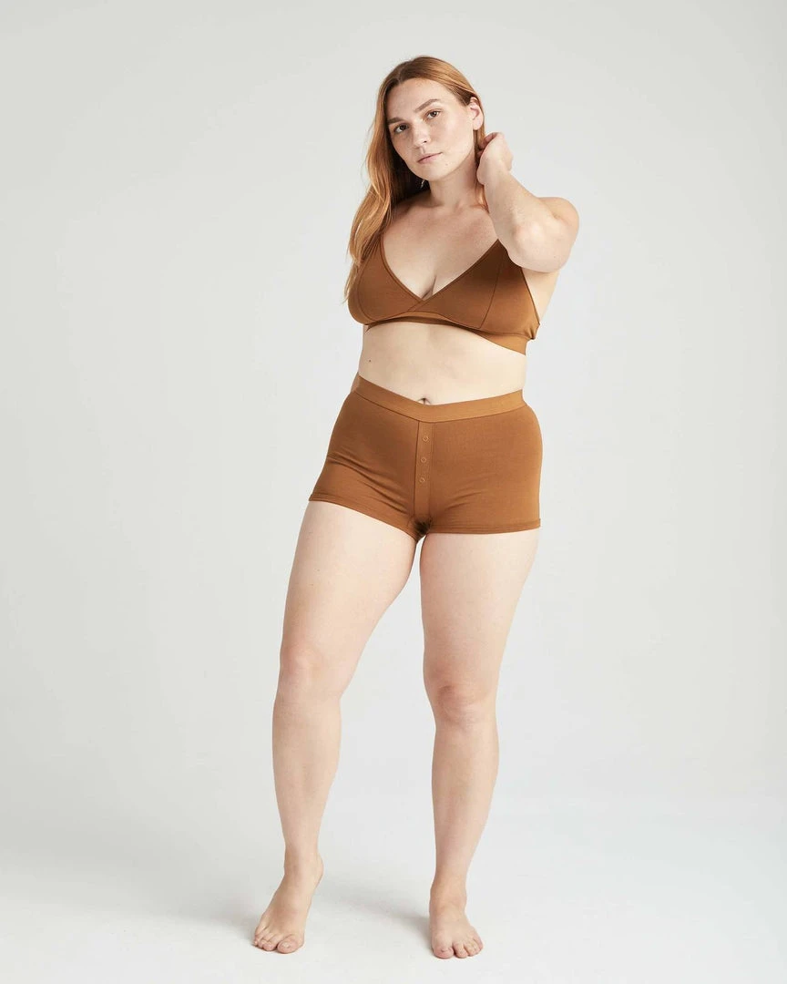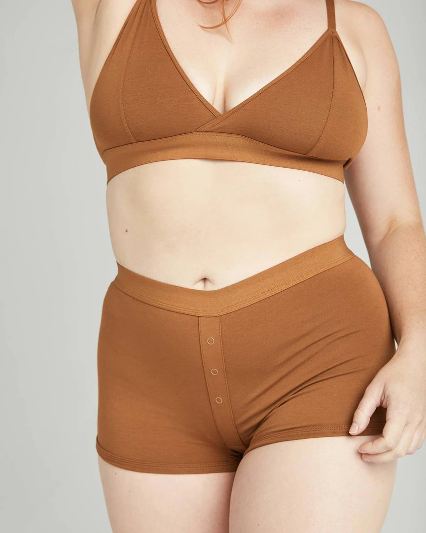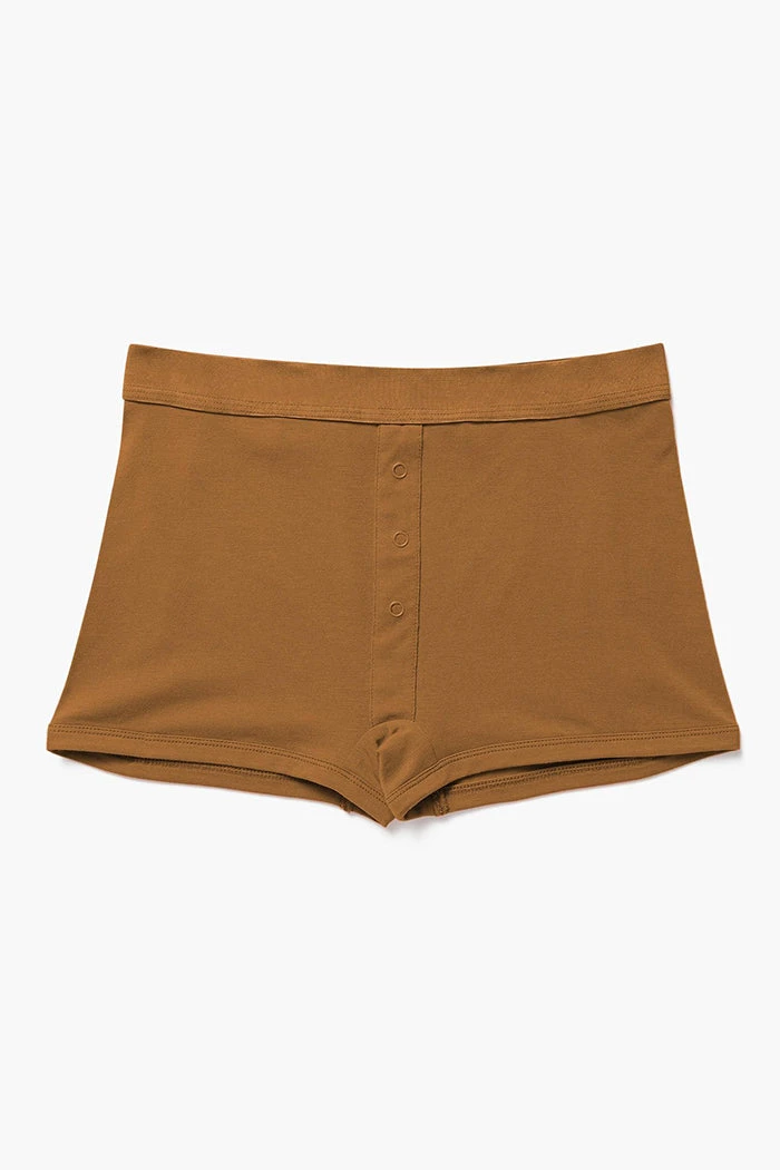 Richer Poorer woodgrain boxer briefs. Soft elastic waistband, faux snap detail at front, ultra-soft modal cotton blend, shrink resistant.