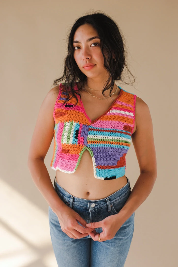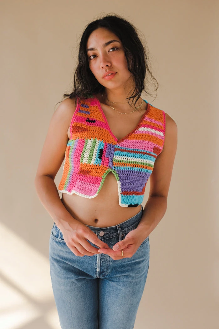 Tach Vicenta handmade crochet vibrant multicolored crop tank top.