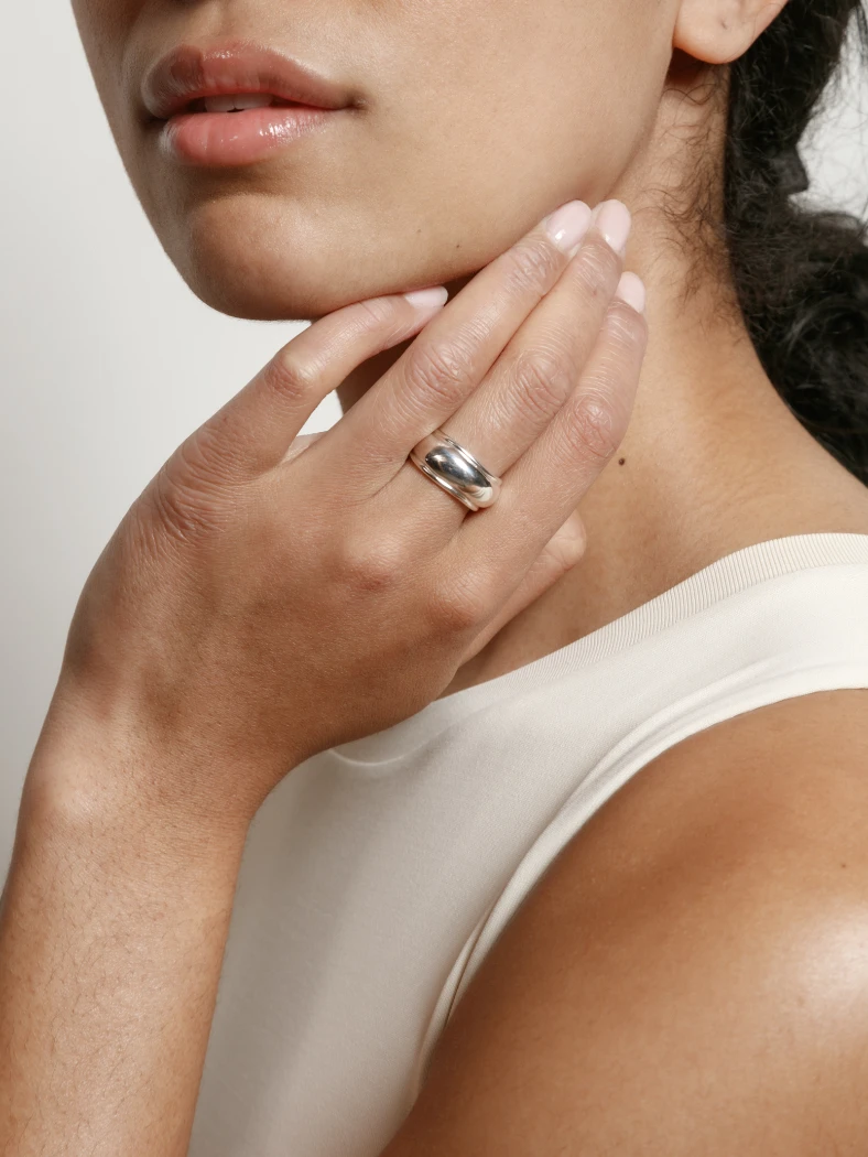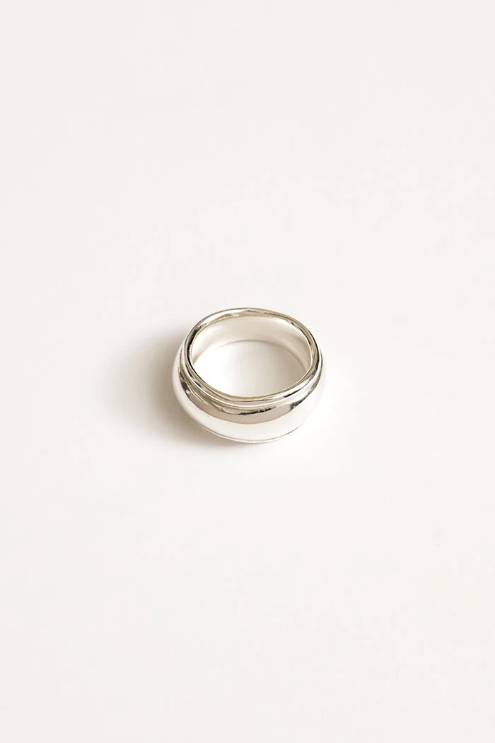 Wolf Circus Anita ring in silver. Solid sterling silver wavy wide band with border.