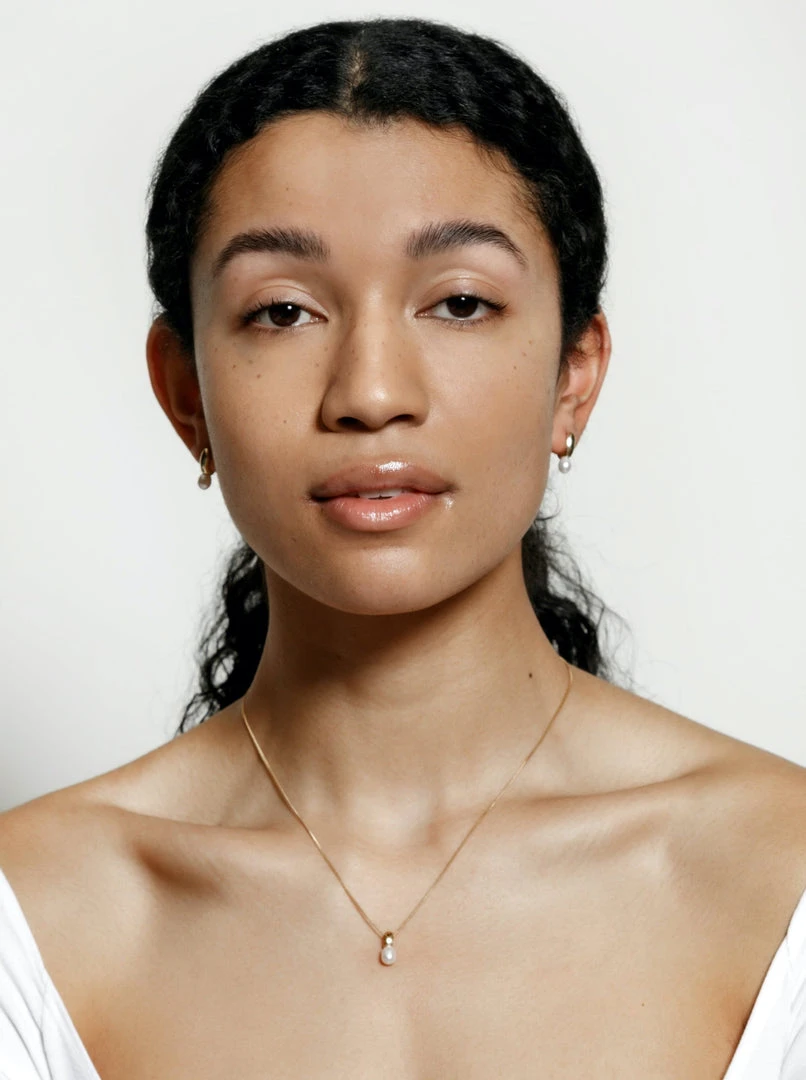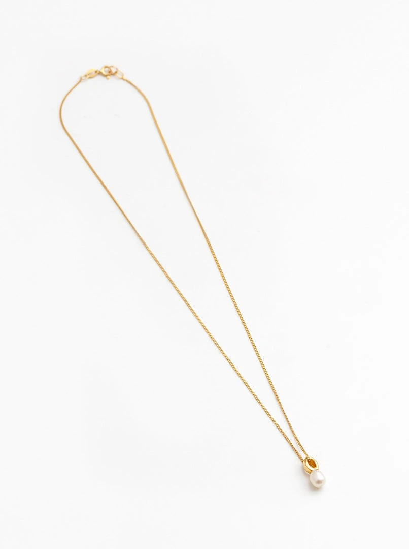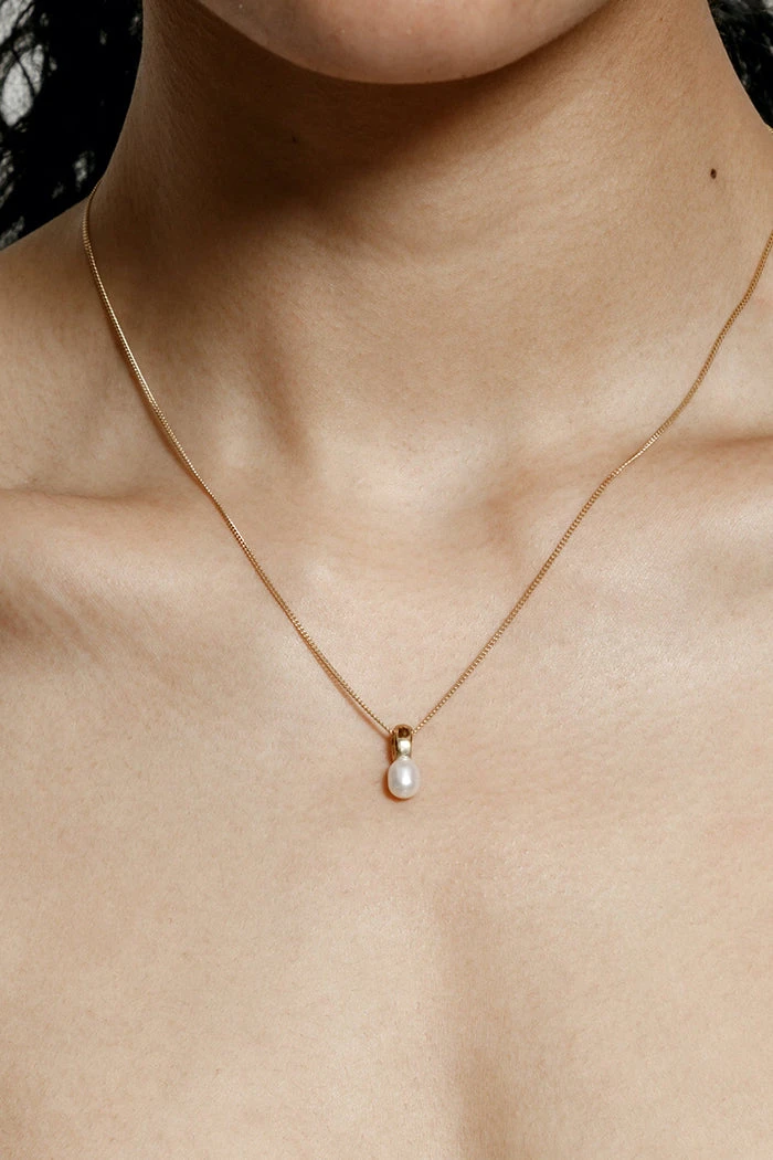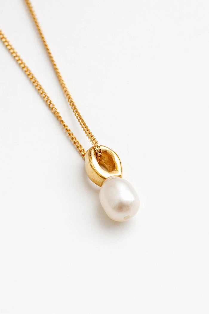 Wolf Circus Betsy necklace pendant with freshwater pearl on curb chain.
