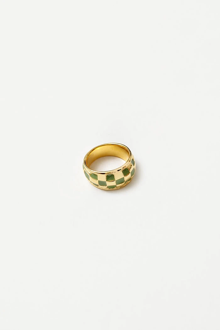 14k gold-plated bronze ring with cream resin. 12mm at widest point