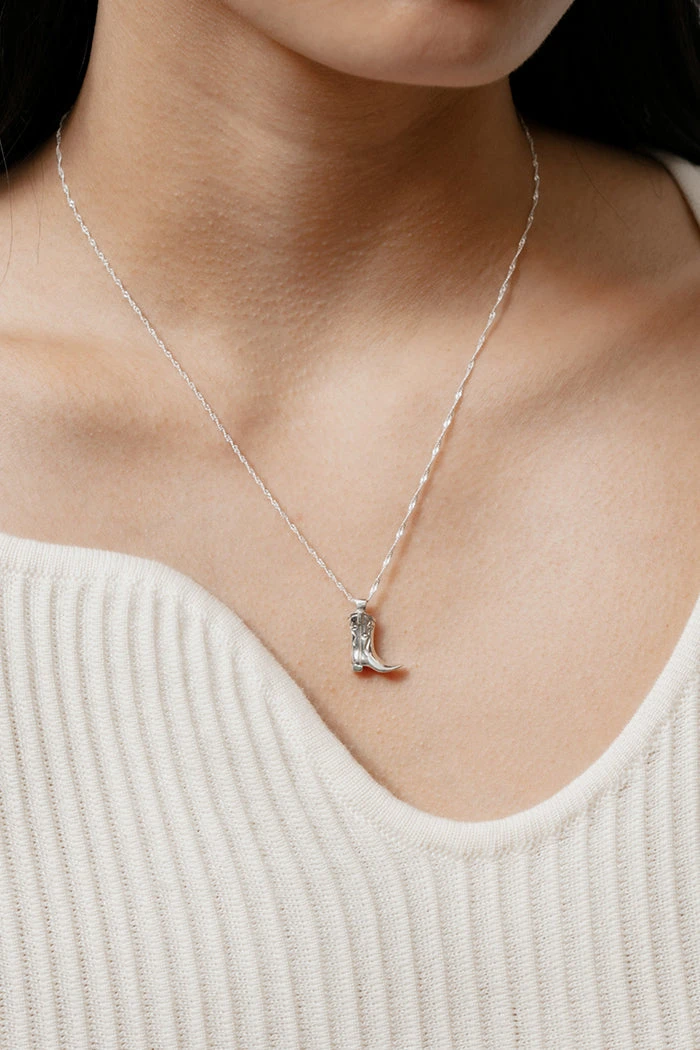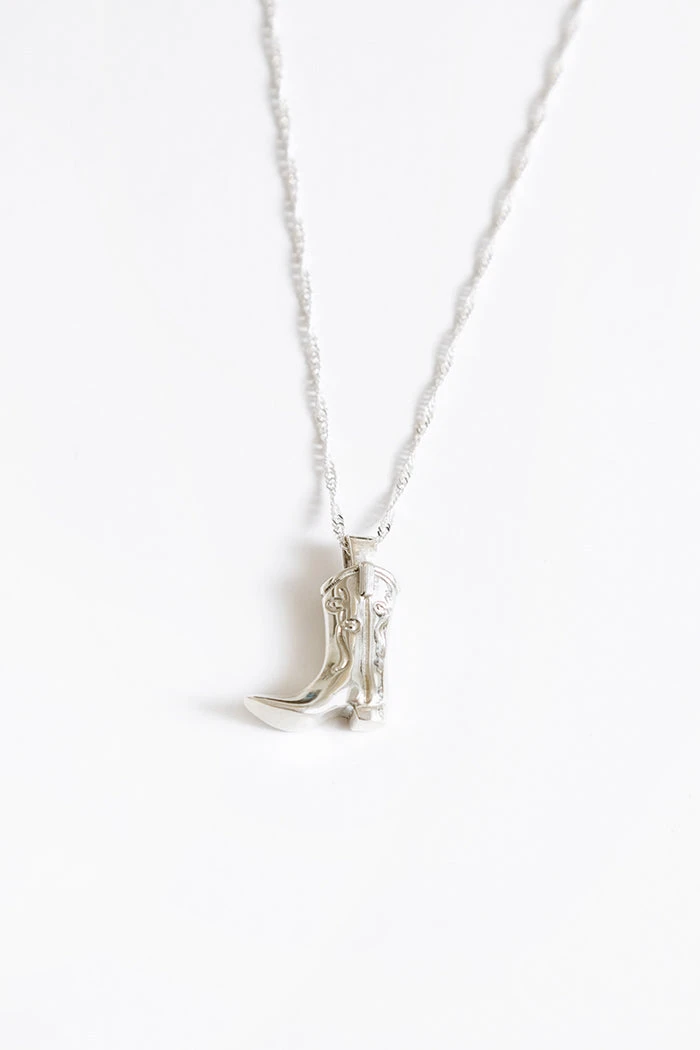 Wolf Circus western cowboy boot pendent in sterling silver.