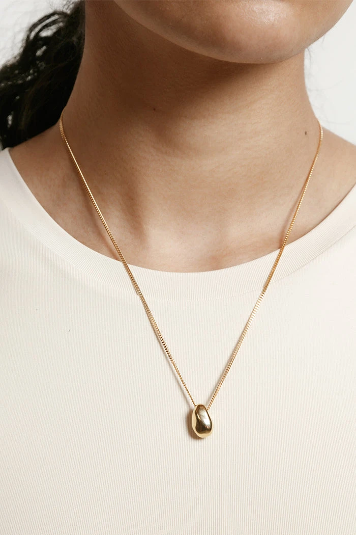 20” 14k gold vermeil with solid 14k gold-plated bronze organic oval pendant.