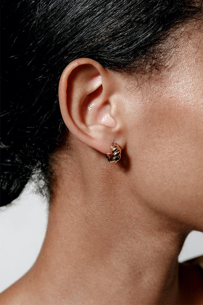 14k gold plated bronze rounded hoops. Gold vermeil posts.